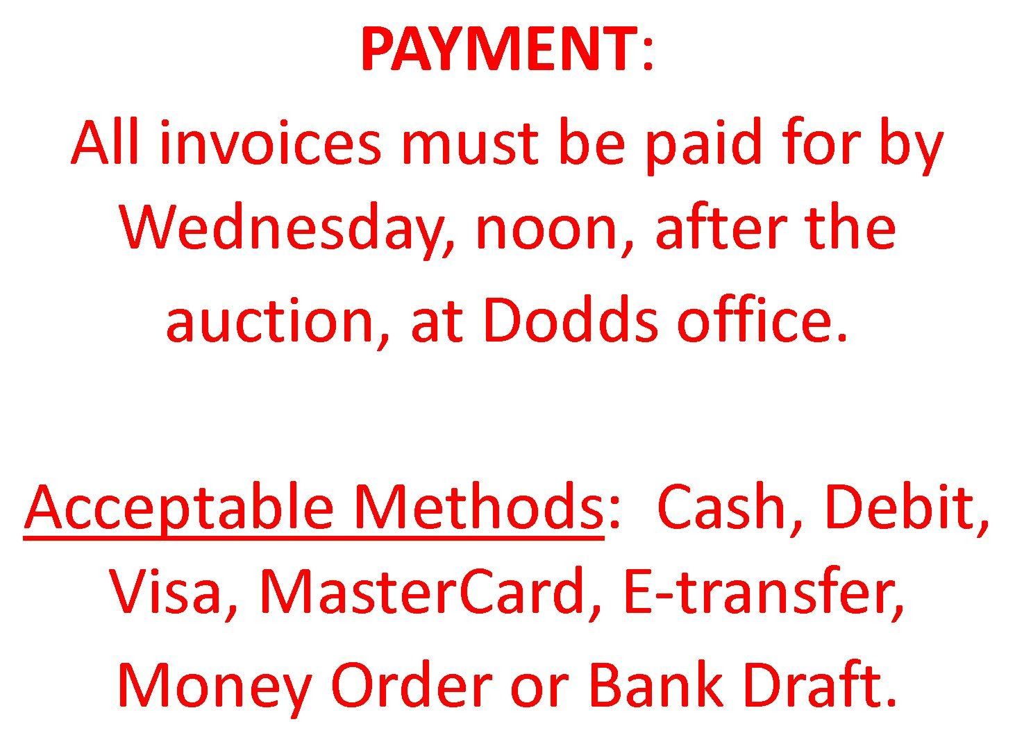 If paying by e-transfer, send e-transfer to: bob@doddsauction.com