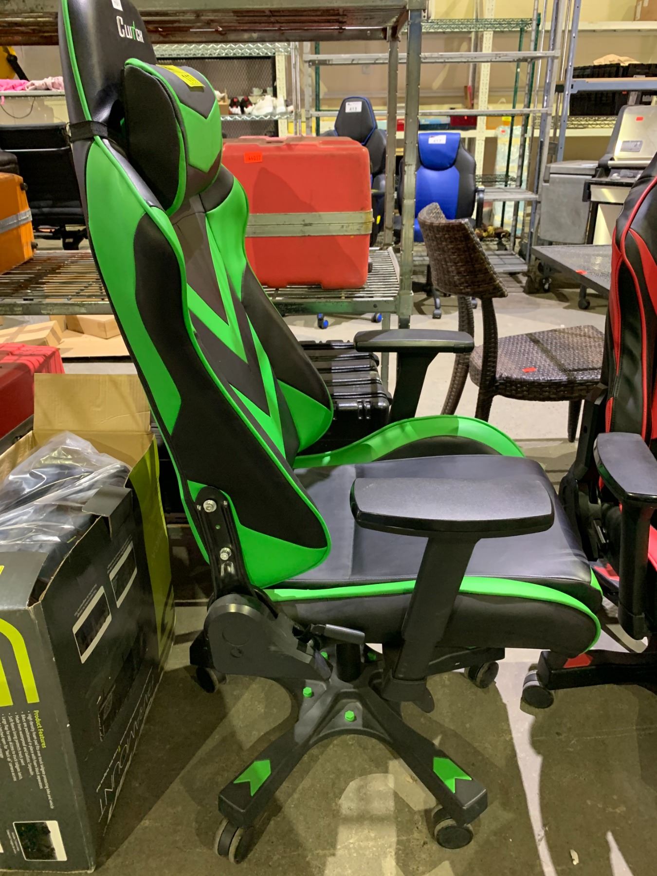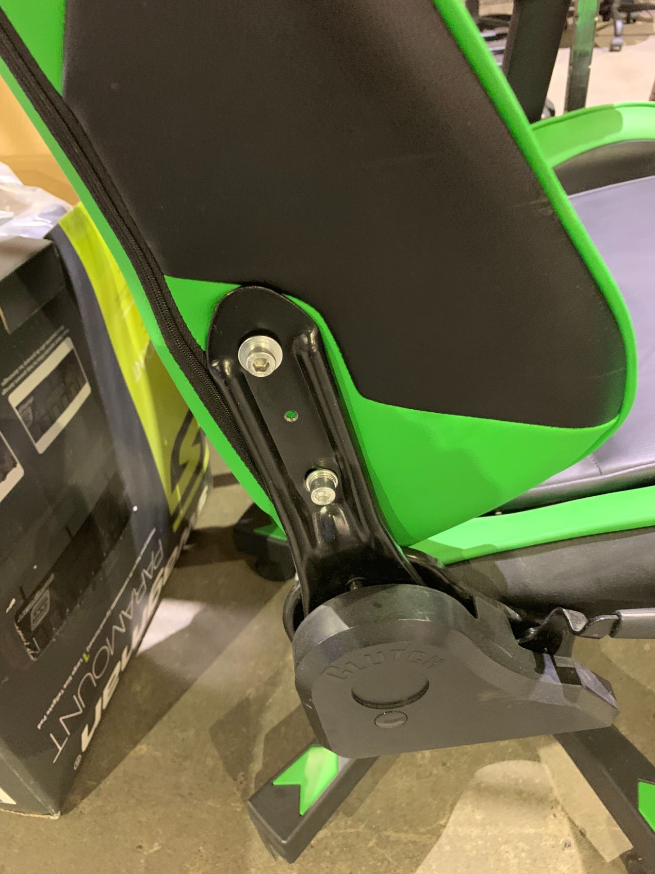 CLUTCH GREEN AND BLACK GAMING CHAIR (SOME COSMETIC DAMAGE)