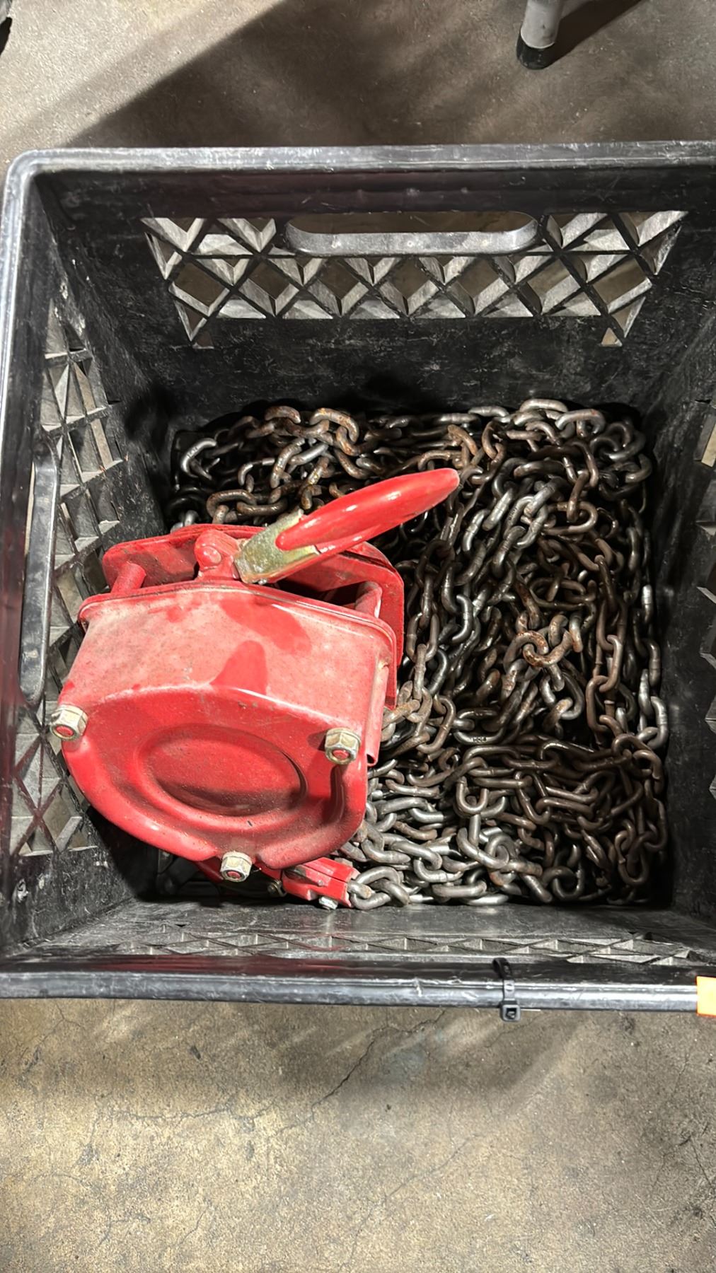 COFFIN RED 1 TON INDUSTRIAL CHAIN HOIST IN BLACK PLASTIC CRATE