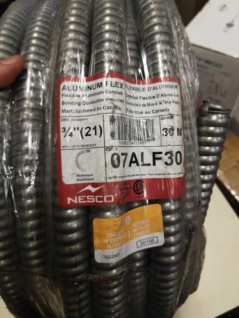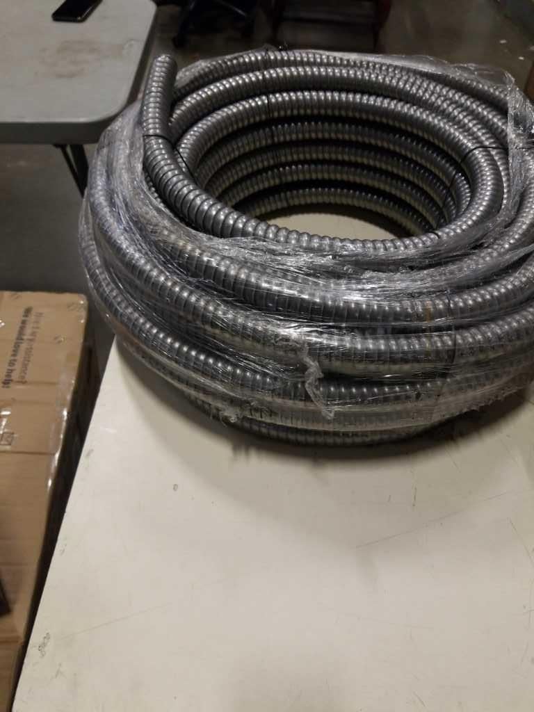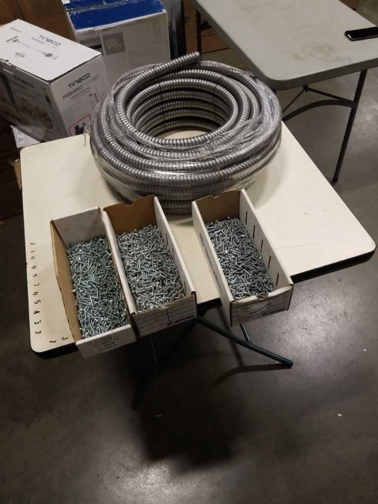 COIL OF ALUMINUM FLEX CONDUIT AND 3 TRAYS OF SCREWS