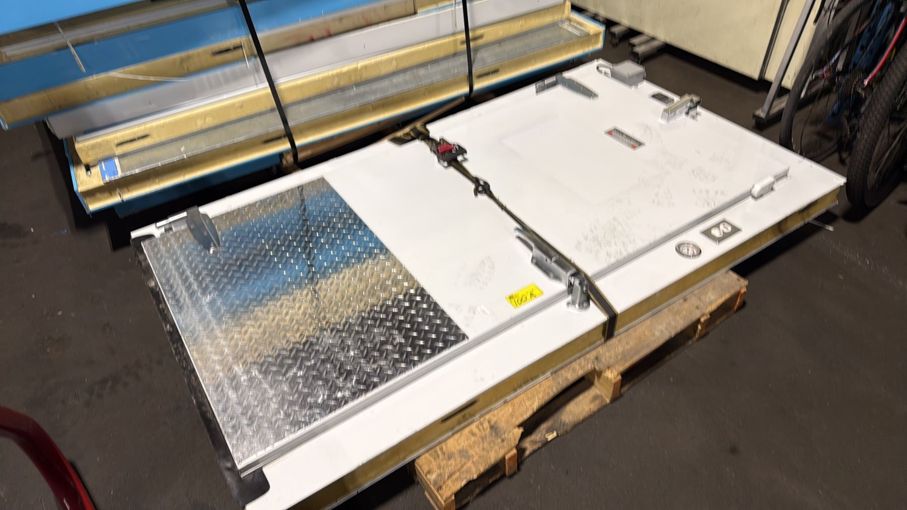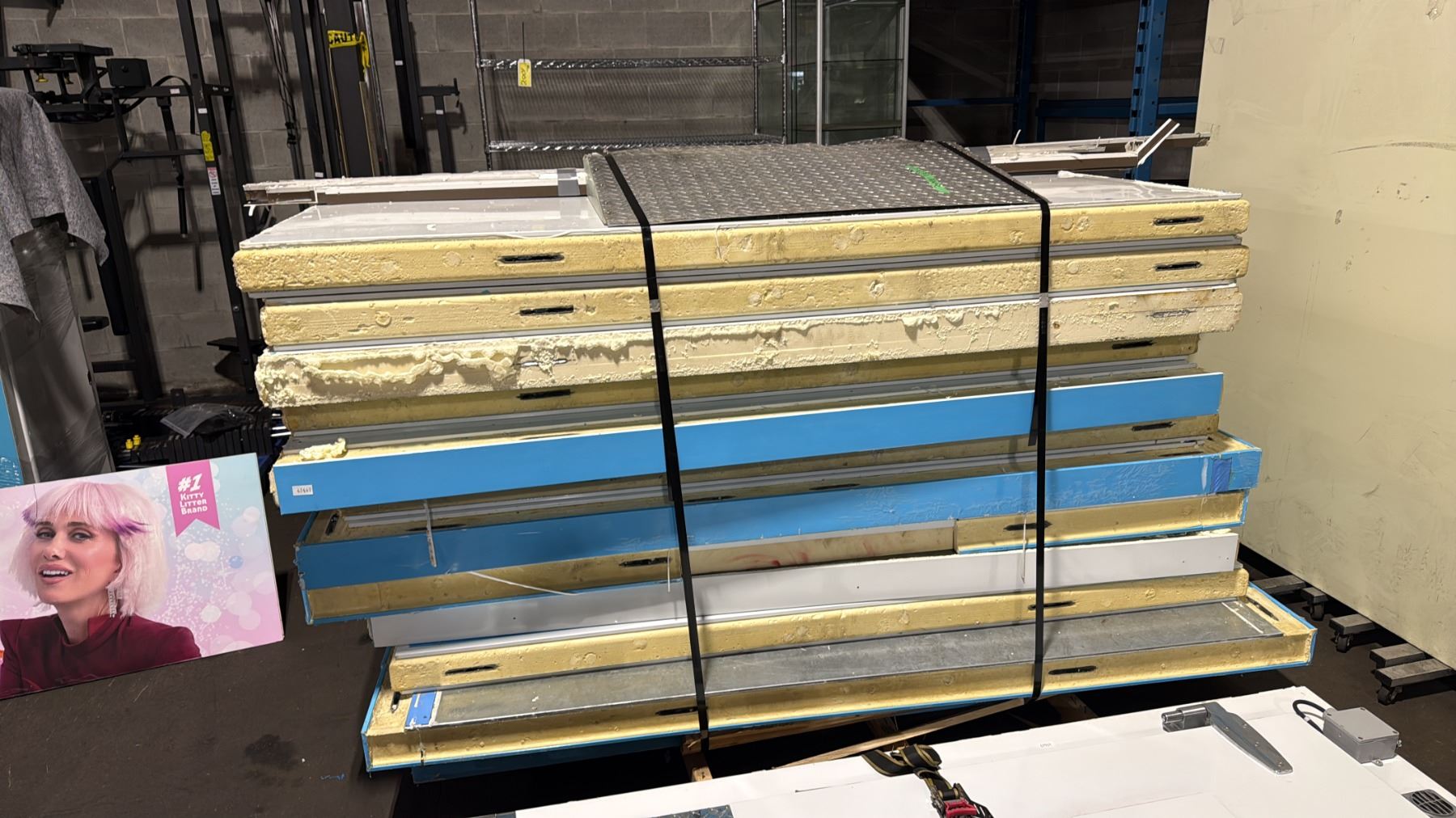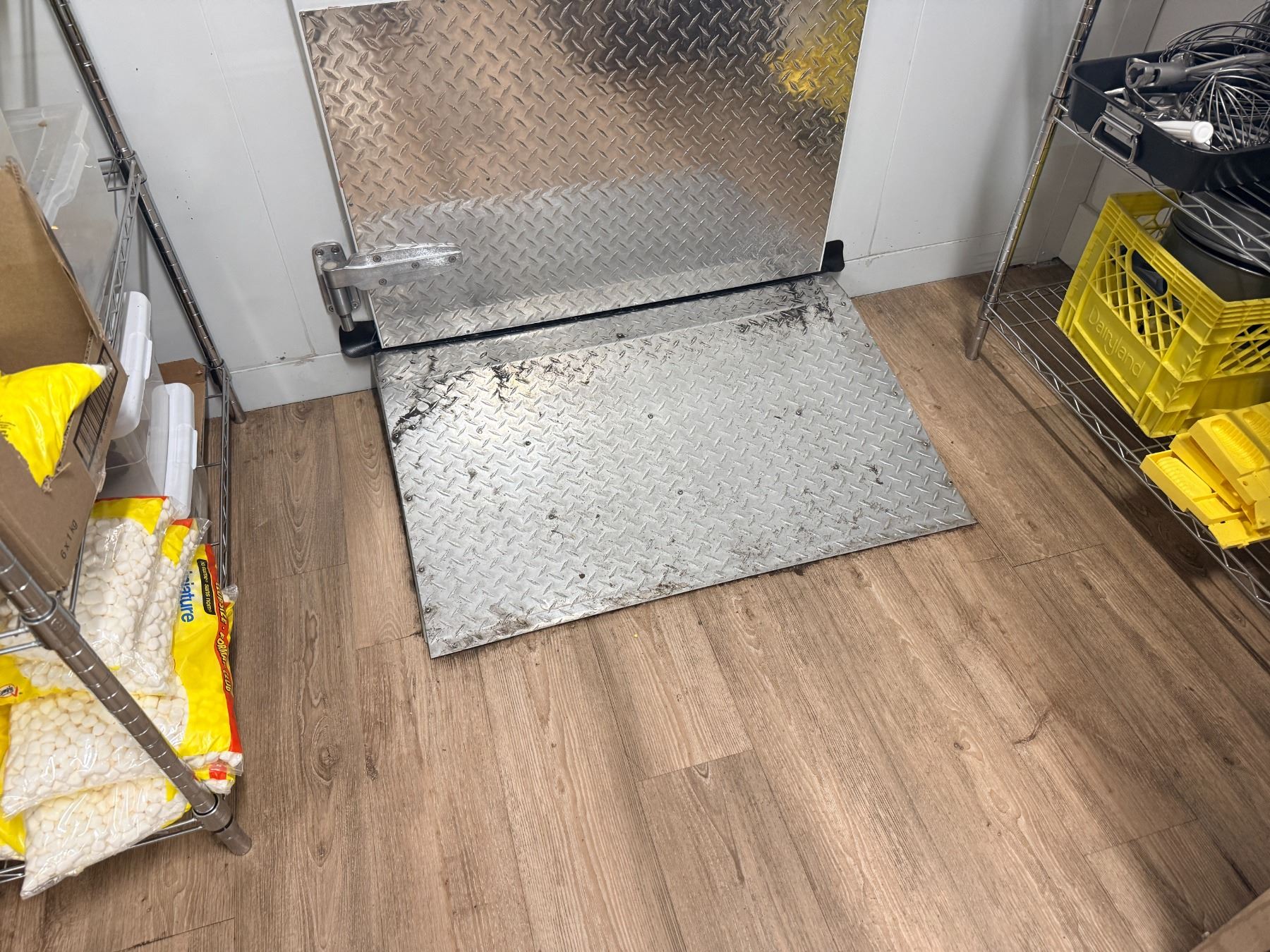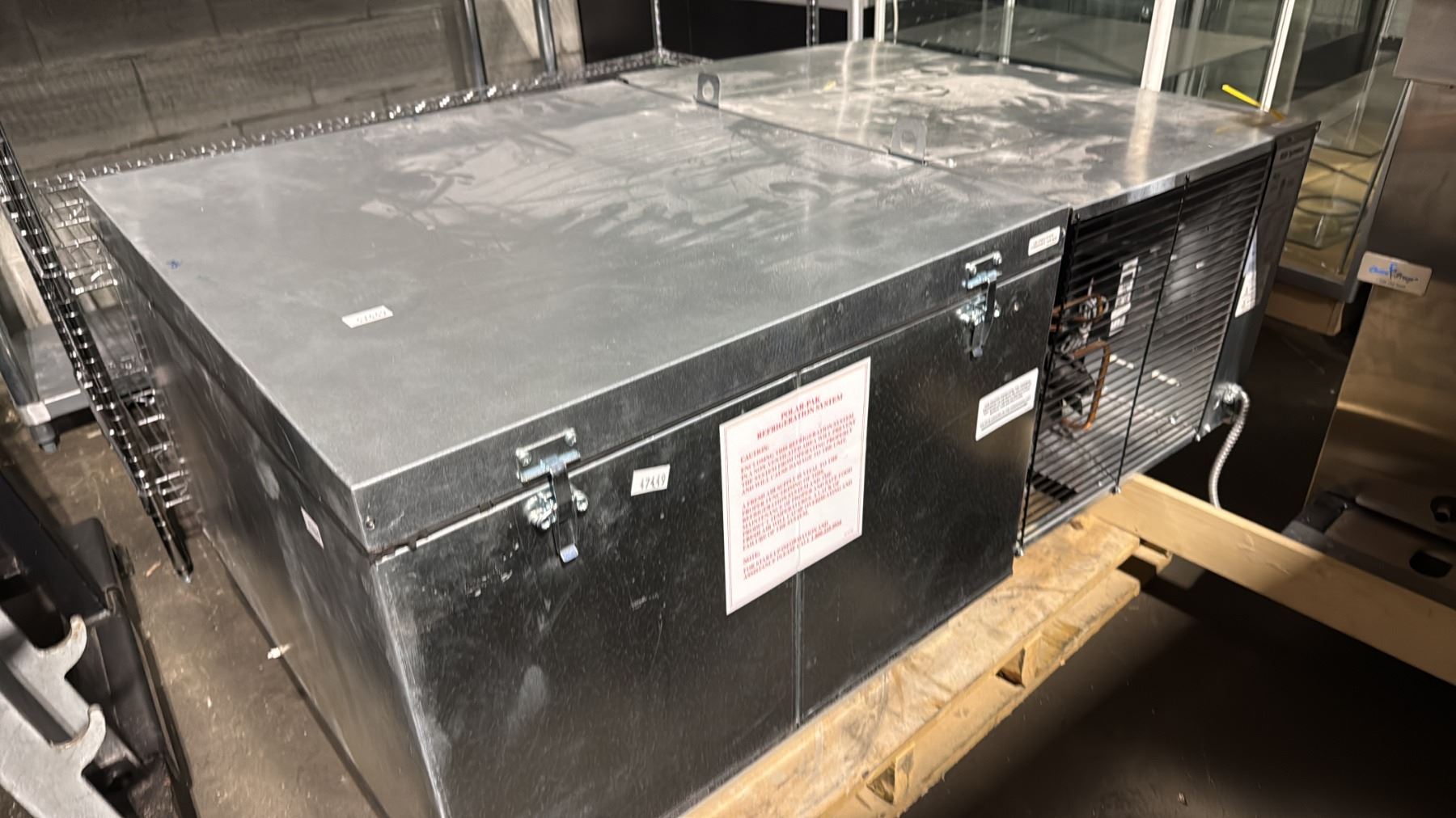 COLDMATIC COOL MASTER APPROX 7 1/2" X 8' X 7' 6"H WHITE COMMERCIAL WALKIN FREEZER WITH RDI TOP DROP R448Z 1/2HP SINGLE PHASE FREEZER UNIT PACK IN ENCLOSURE WITH FLOOR & CHECKER PLATE RAMP *DISMANTLED & READY FOR TRANSPORT*