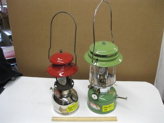 COLEMAN CHROME BASED LANTERN, MISSING GLASS & AN AFG GAS LANTERN