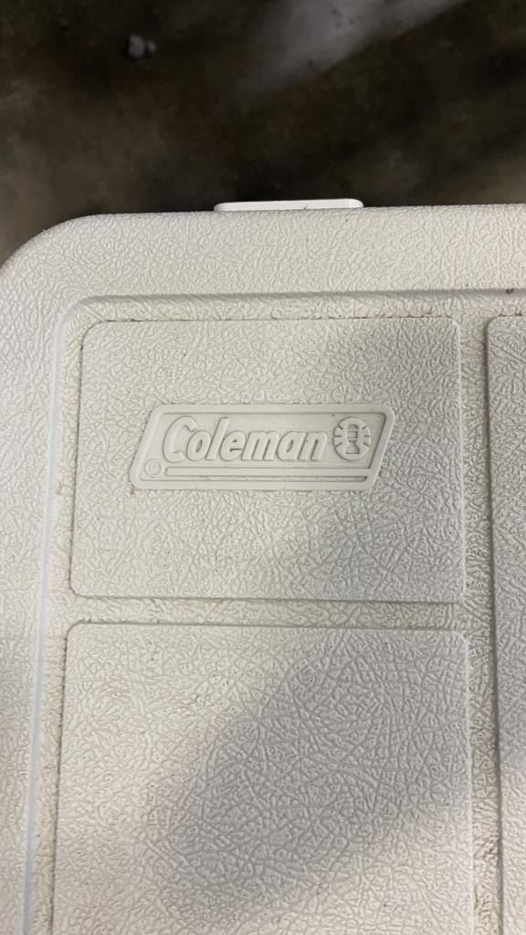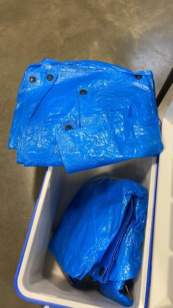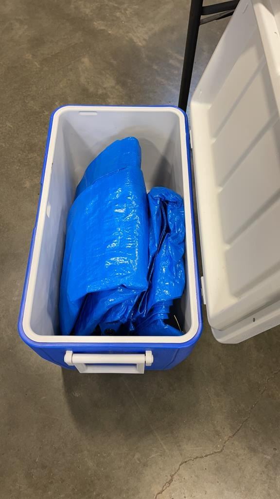 COLEMAN COOLER WITH 2 BLUE TARPS