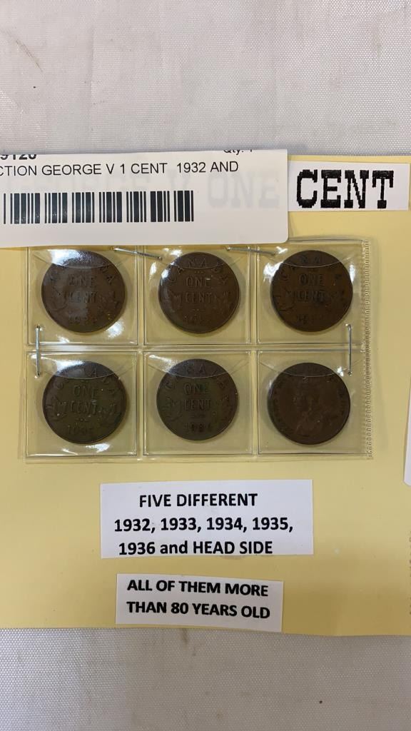 COLLECTION GEORGE V 1 CENT 1932 AND 1936 W/ 2 GEORGE V STAMPS
