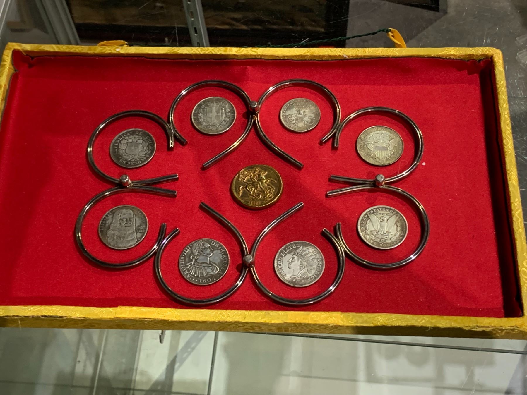 COLLECTION OF PORTRAIT COINS AND TOKENS IN FRAME