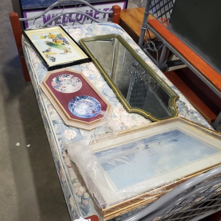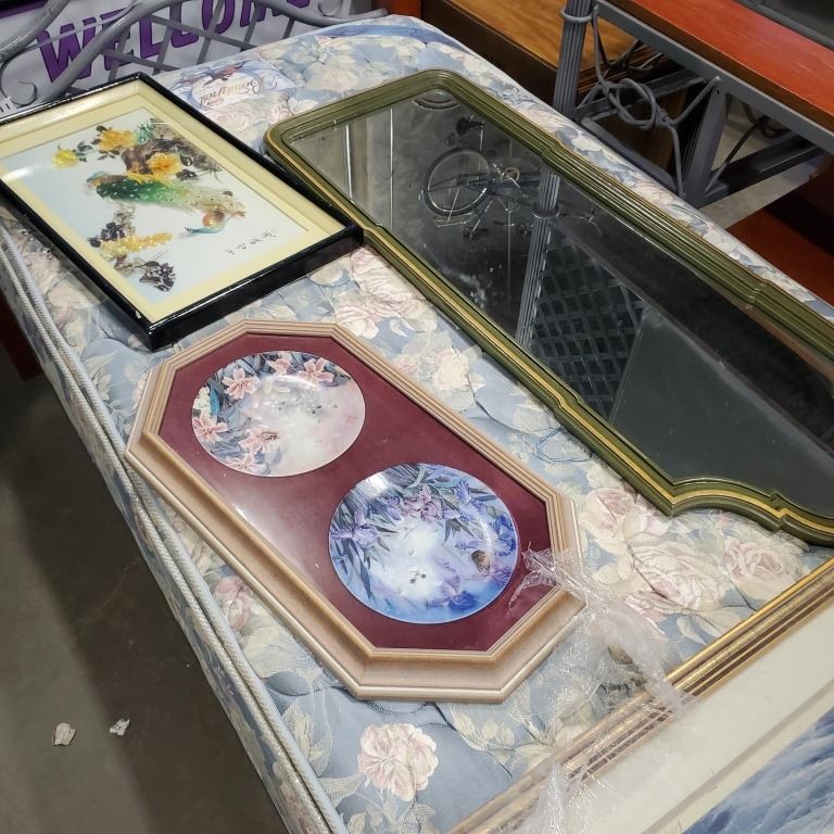 COLLECTOR PLATES, FRAMED MIRROR AND ARTWORK