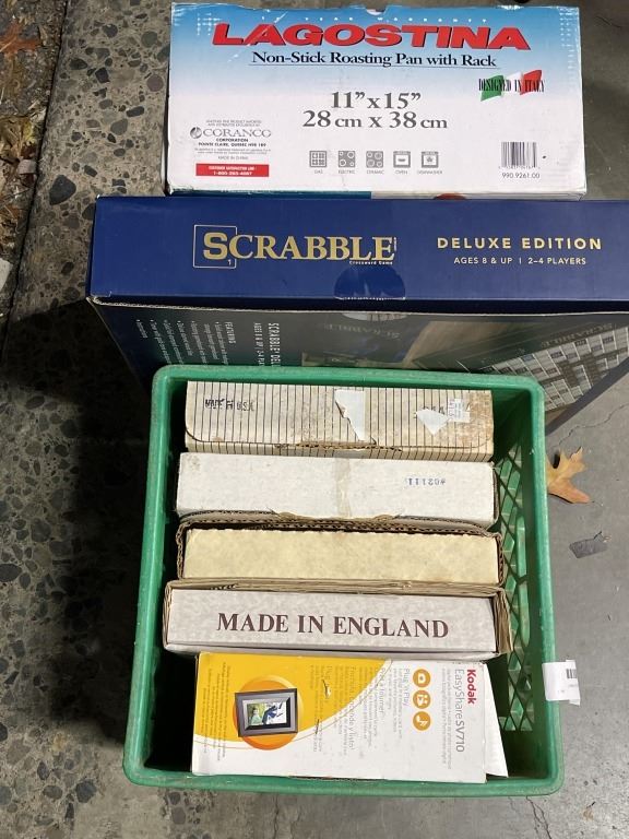 COLLECTOR PLATES, LARGE FORMAT SCRABBLE GAME, ROASTING PAN AND KODAK PICTURE FRAME