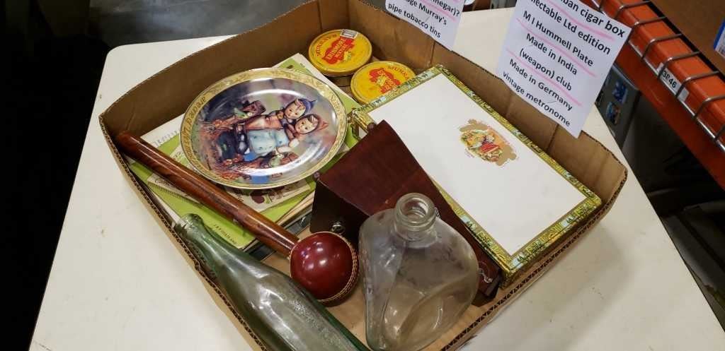 COLLECTOR TINS, METRONOME, WHISKY BOTTLE, KNTTING BOOKS