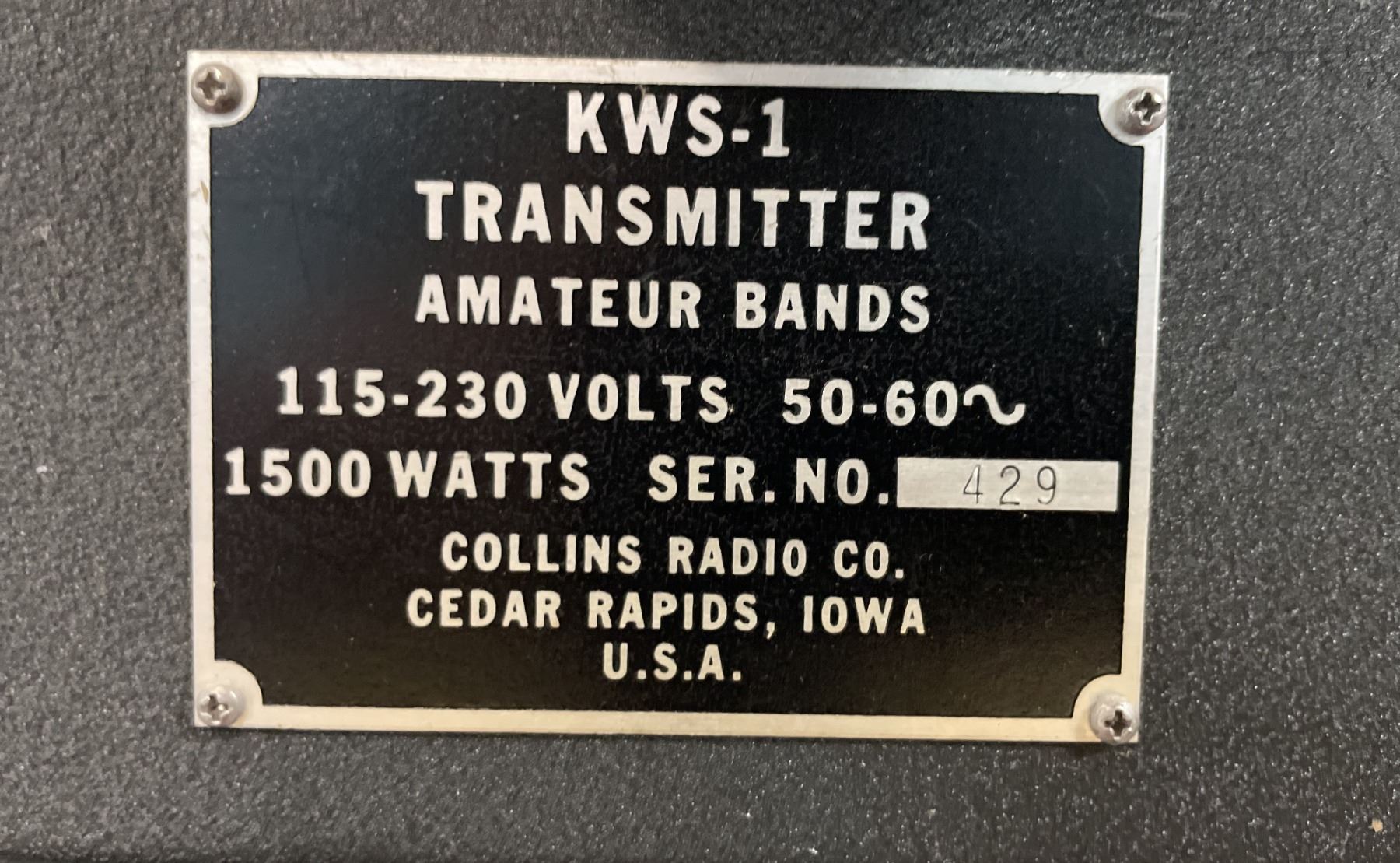 COLLINS KWS-1 TRANSMITTER ON TOP OF A COLLINS POWER AMPLIFIER (220V)