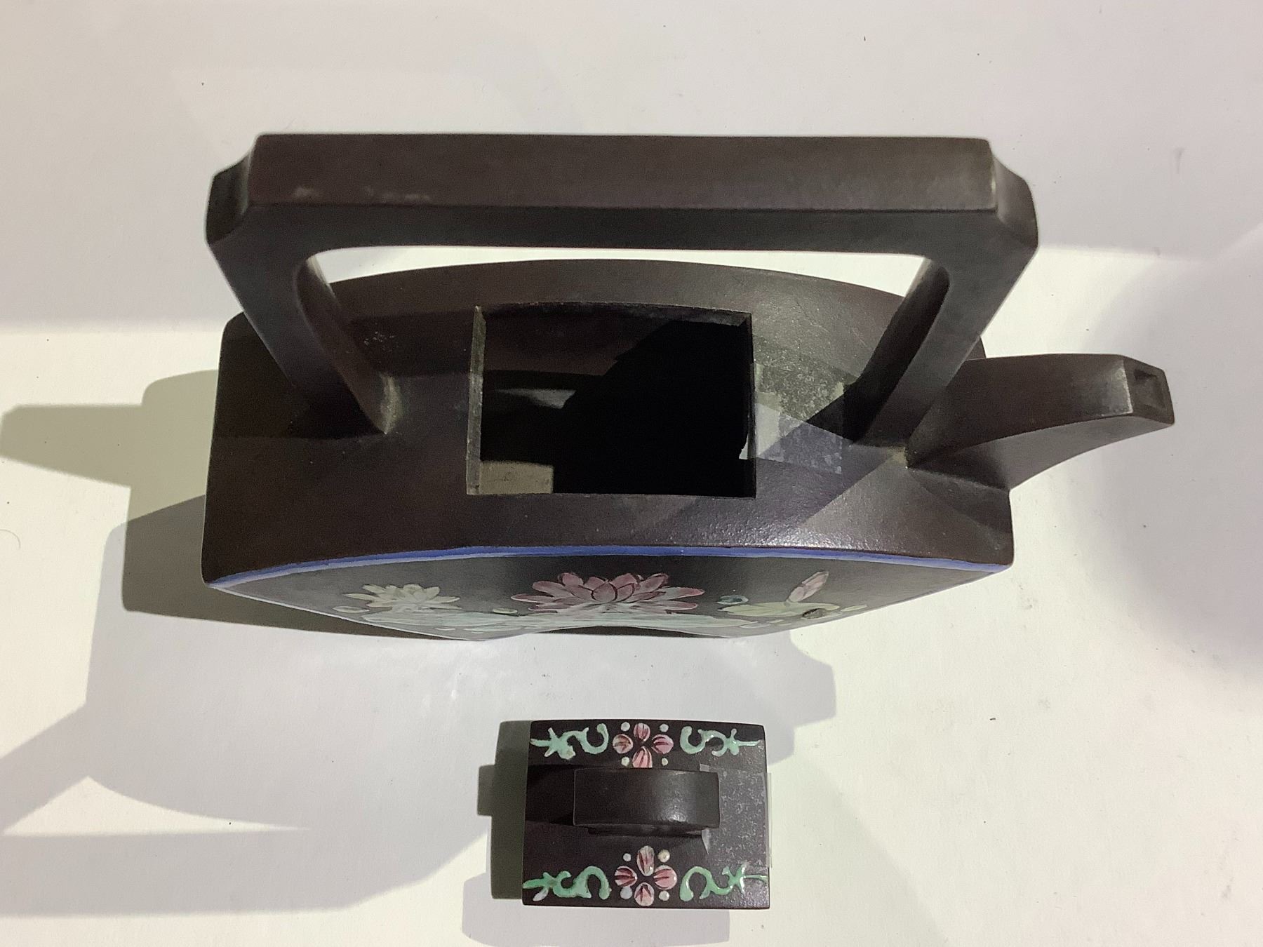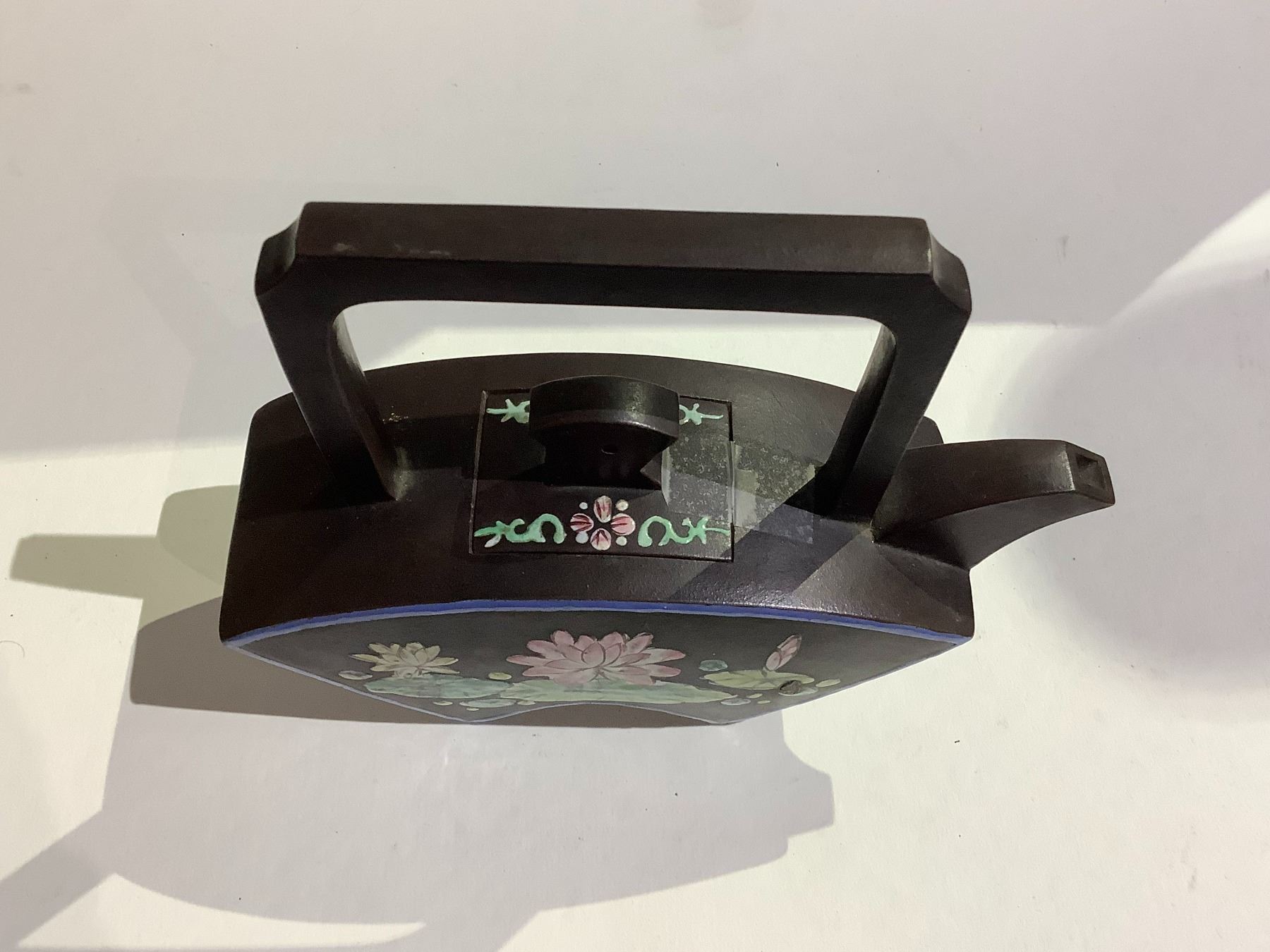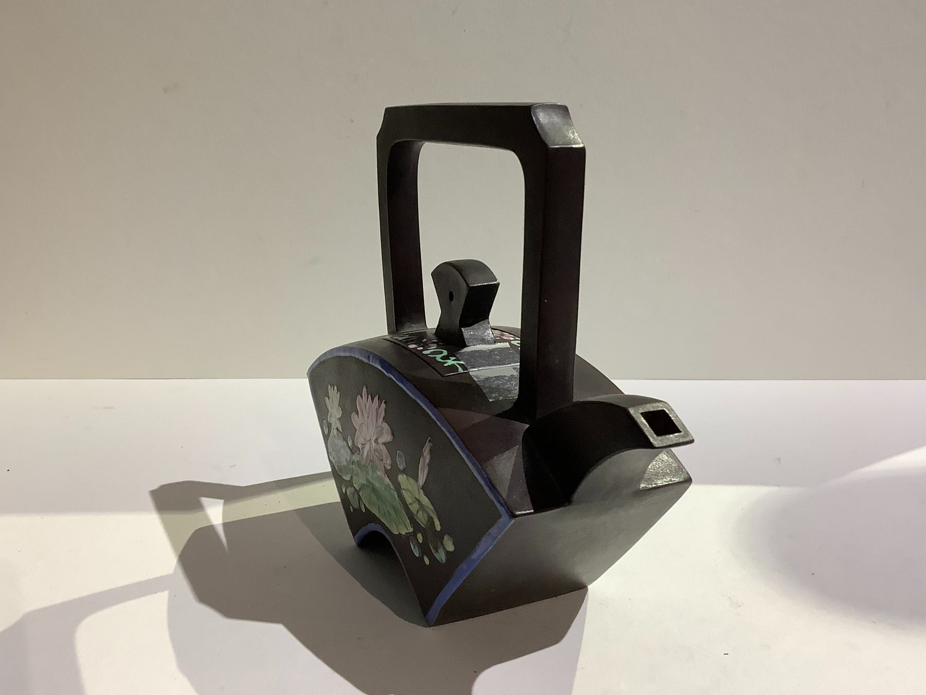 COLOUR ENAMELED YIXING HANDLE TEAPOT