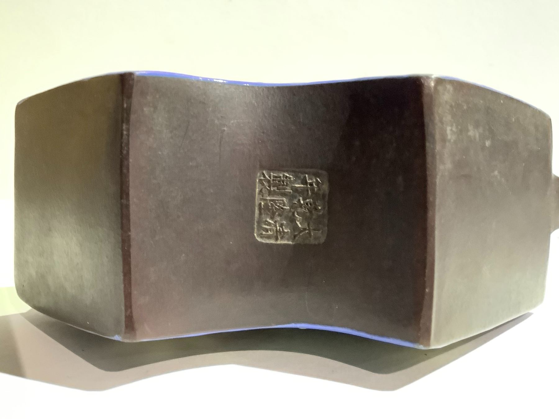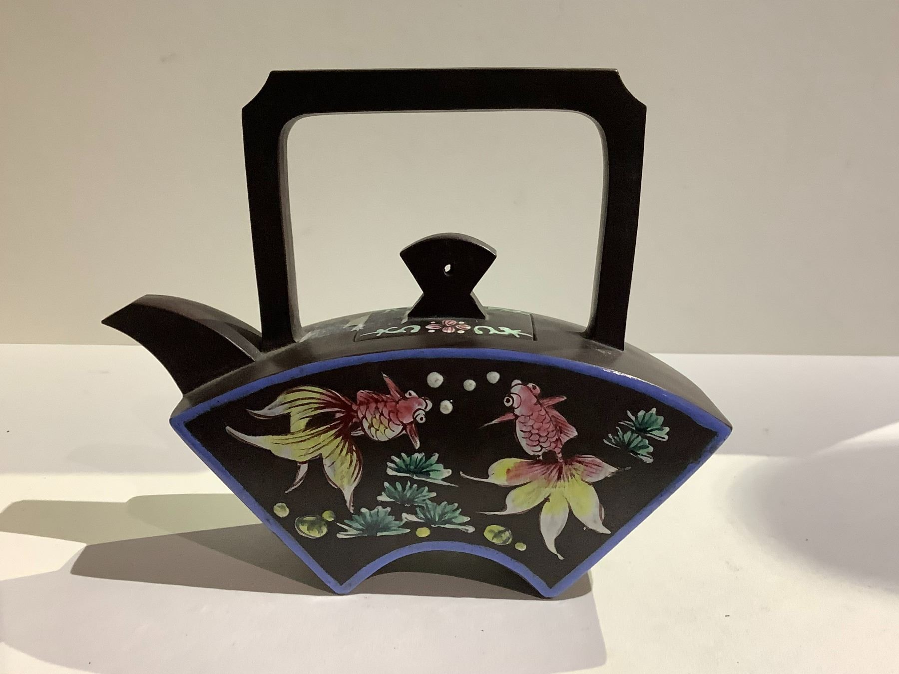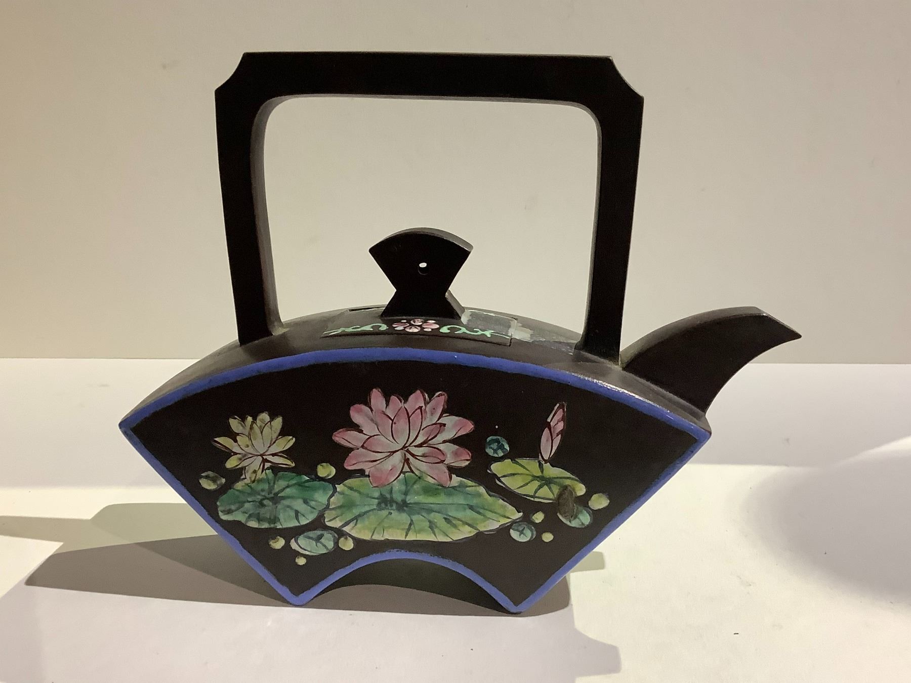 COLOUR ENAMELED YIXING HANDLE TEAPOT