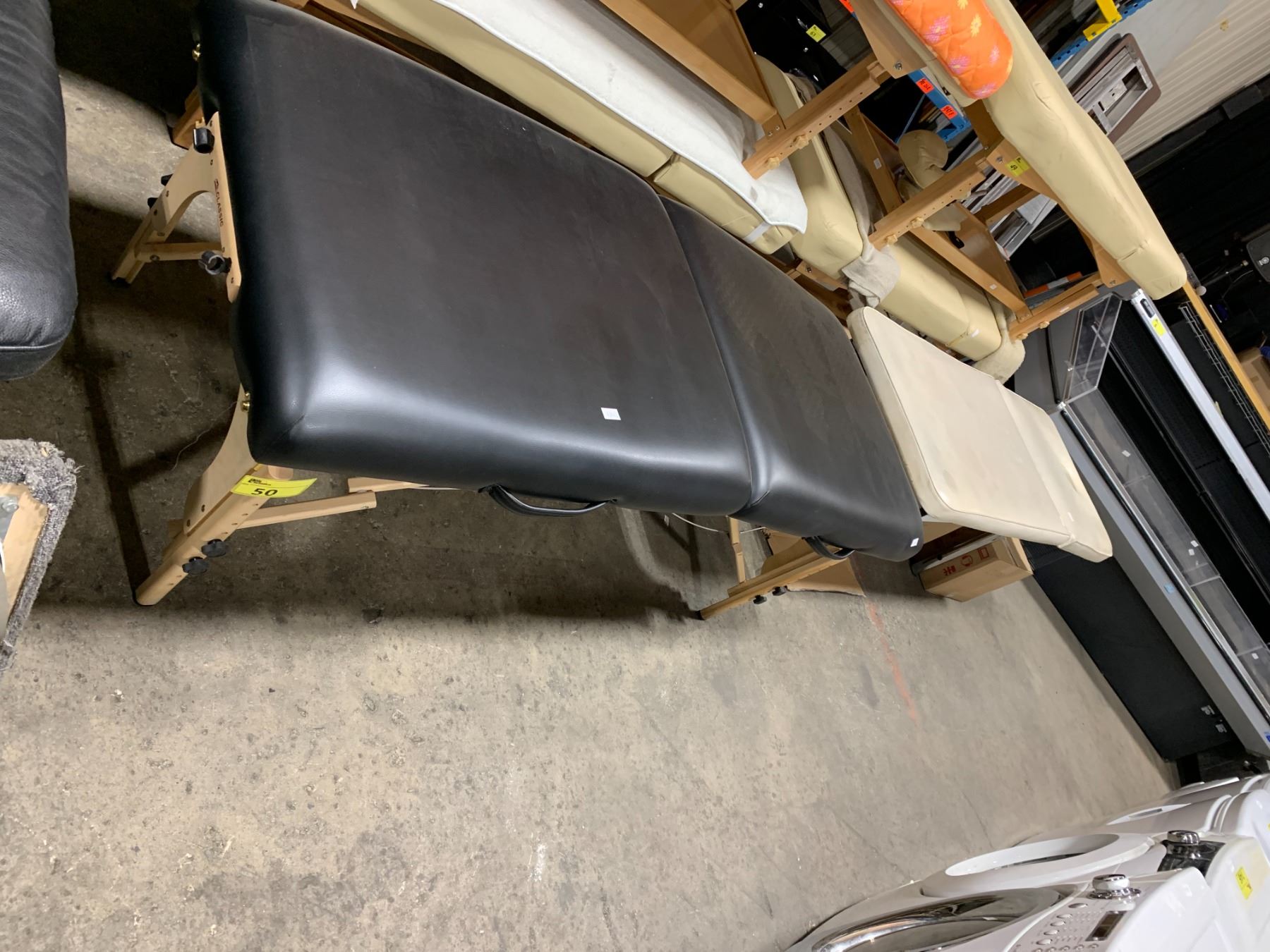 COMMERCIAL BLACK 72"L X 30"W X 28"H FOLDING PROFESSIONAL MASSAGE BED & CREAM 72"L X 28"W X 27"H TILTING PROFESSIONAL MASSAGE BED
