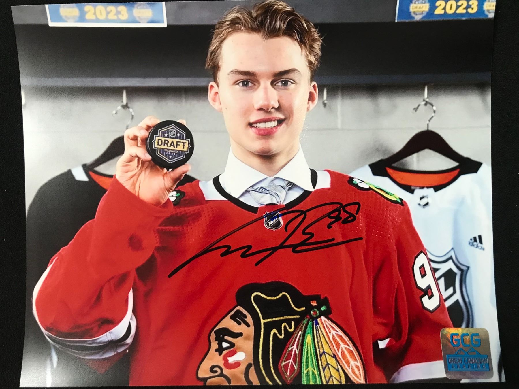 CONNOR BEDARD SIGNED CHICAGO BLACKHAWKS 8 X 10 (GCG HOLO)