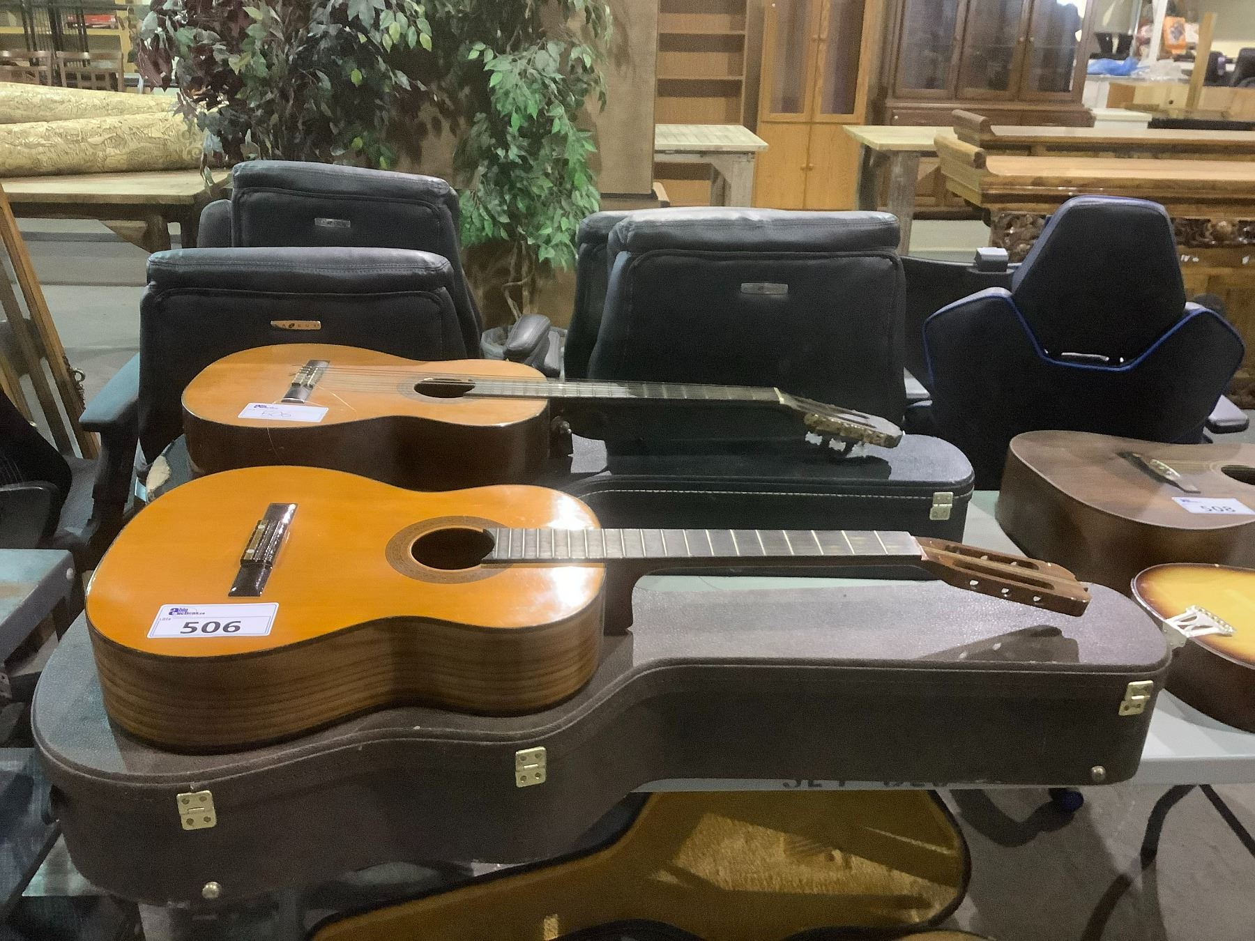 CONSERVATORE VINTAGE ACOUSTIC GUITAR MODEL C-130 (1 STRING UNATTACHED) WITH HARD CARRYING CASE & PRIMA VINTAGE ACOUSTIC GUITAR MODEL D22 WITH HARD CARRYING CASE (NO STRINGS, TUNING PEGS, , OR END PINS)