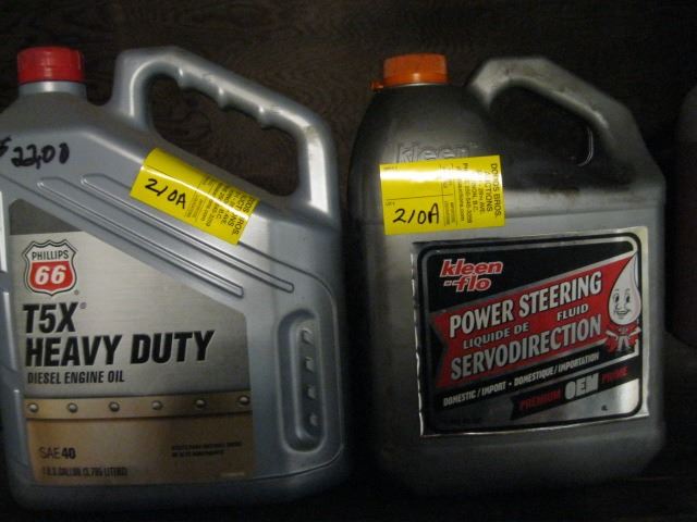 CONTAINER OF POWER STEERING FLUID & DIESEL ENGINE OIL, SAE 40