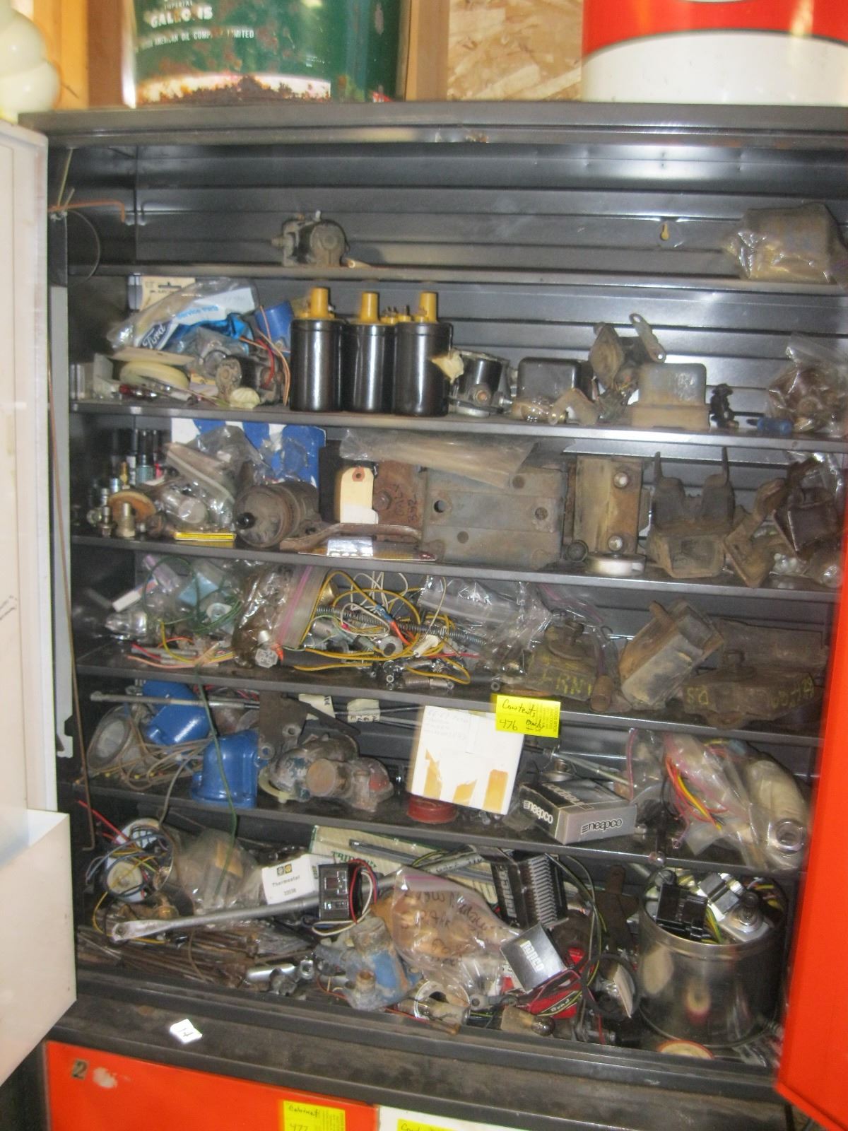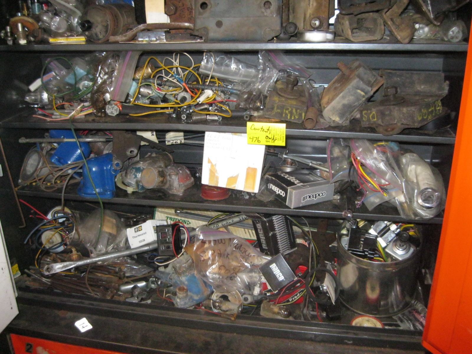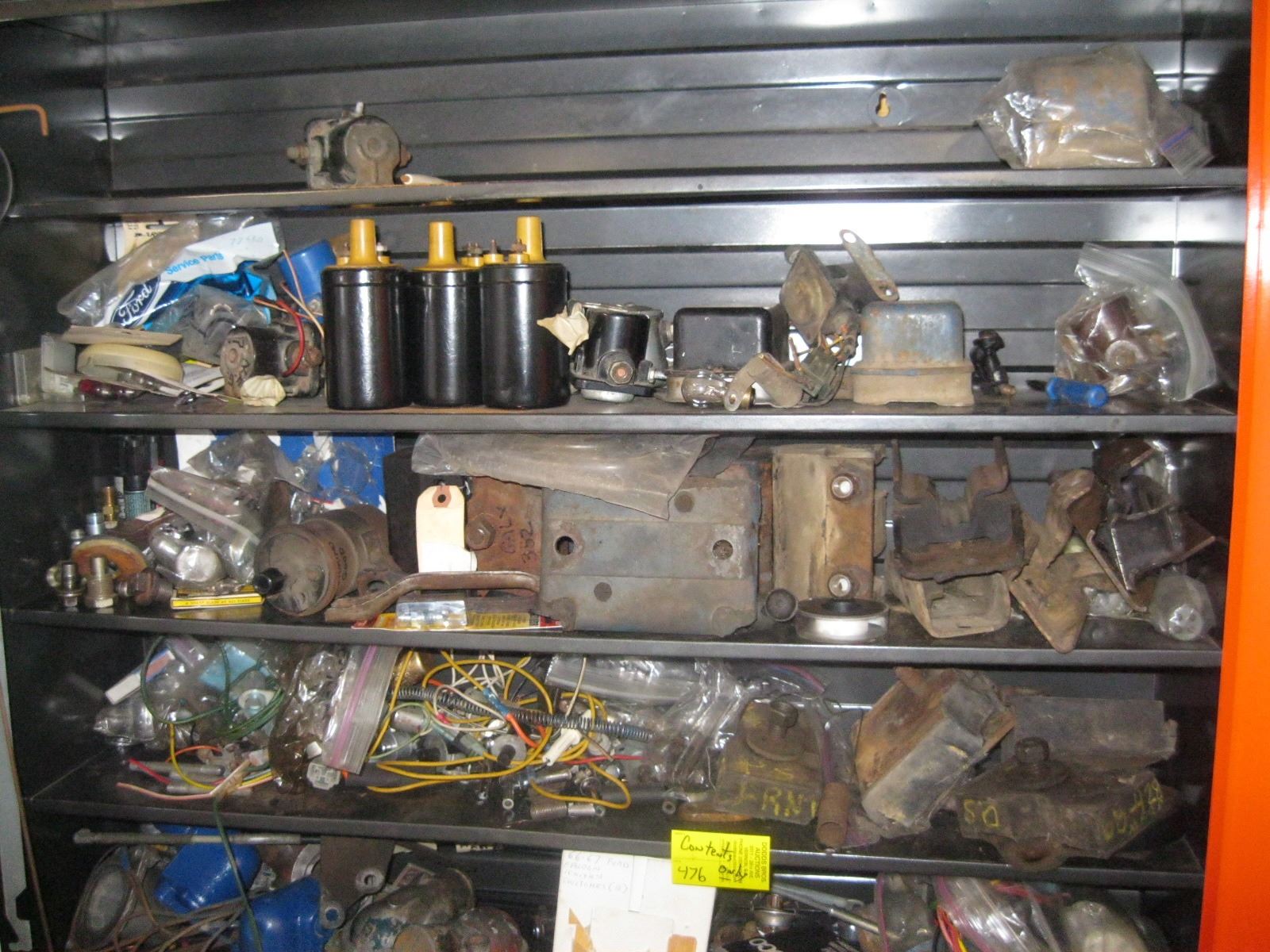 CONTENTS OF CABINET: COILS, ELECTRICAL, MOTOR MOUNTS, ETC.