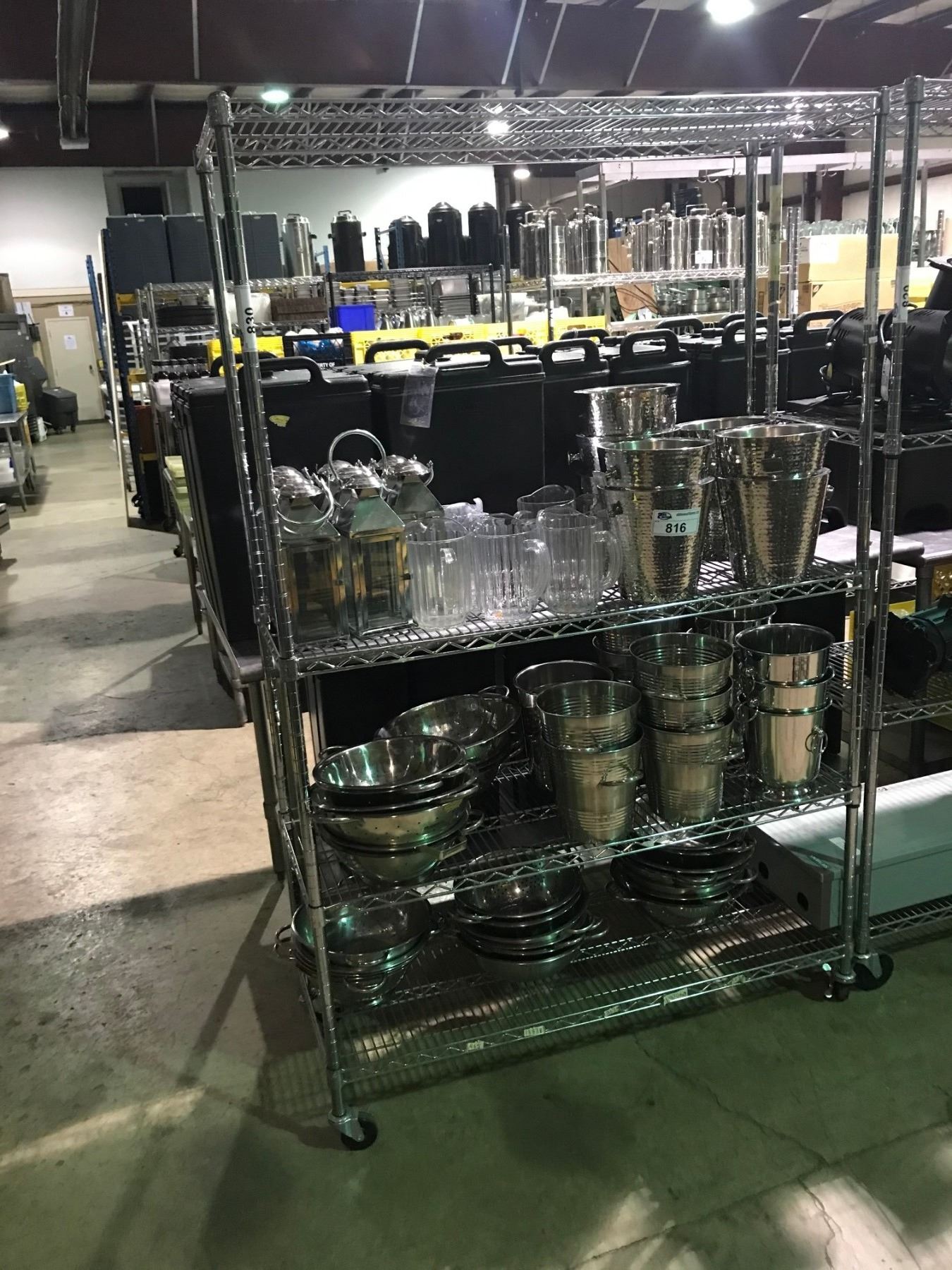 CONTENTS OF RACK INCLUDING ; ICE BUCKETS, PLASTIC PITCHERS, COLANDERS & DECORATIVE LANTERNS (RACK NOT INCLUDED)
