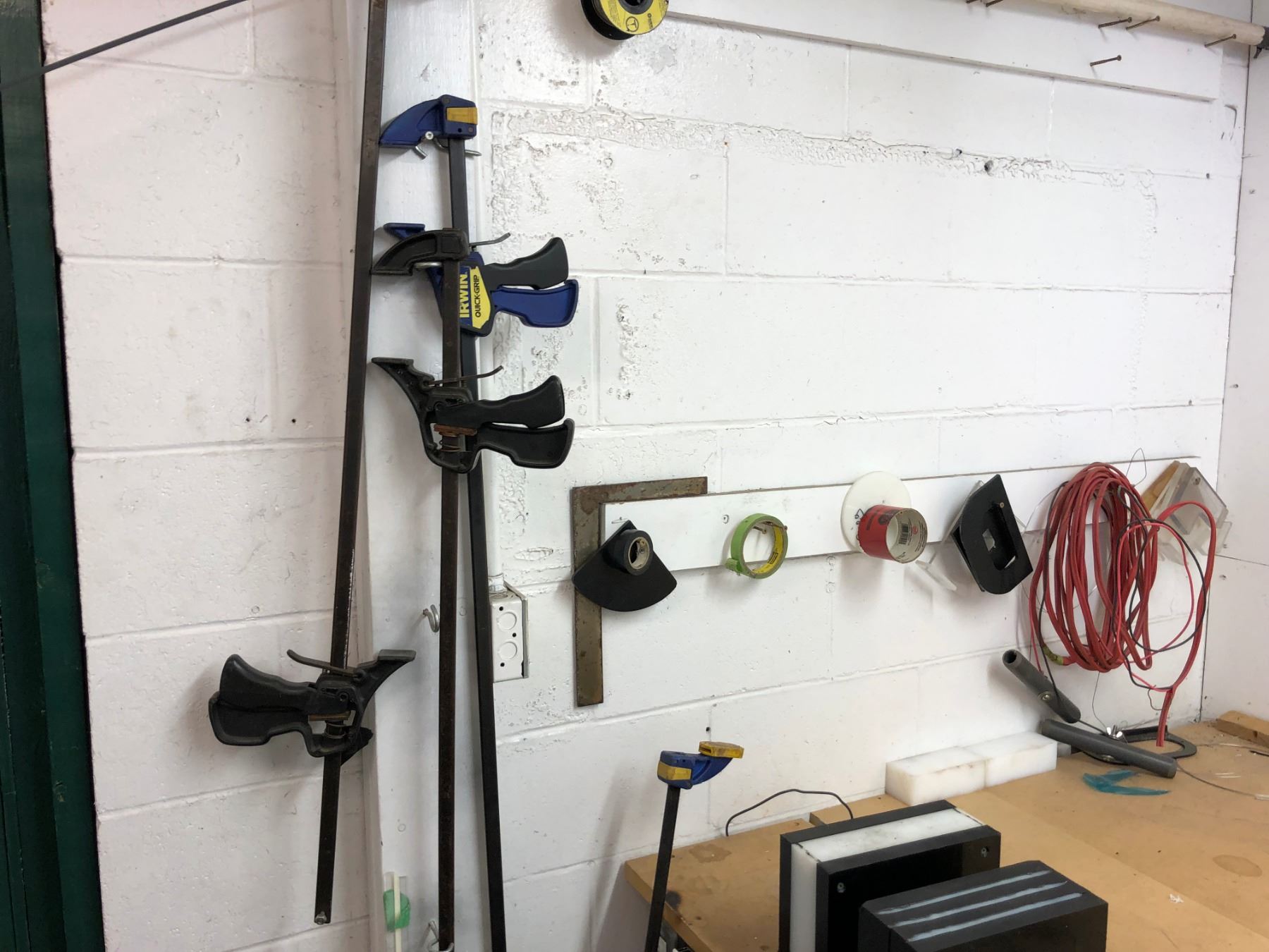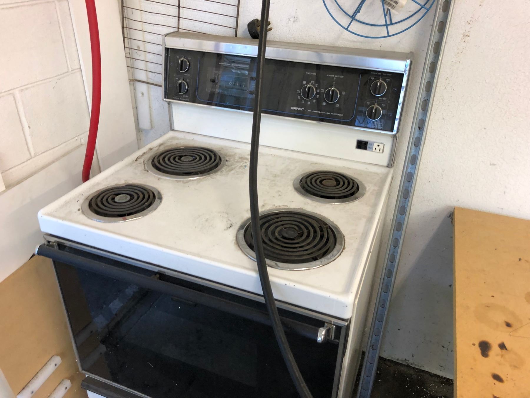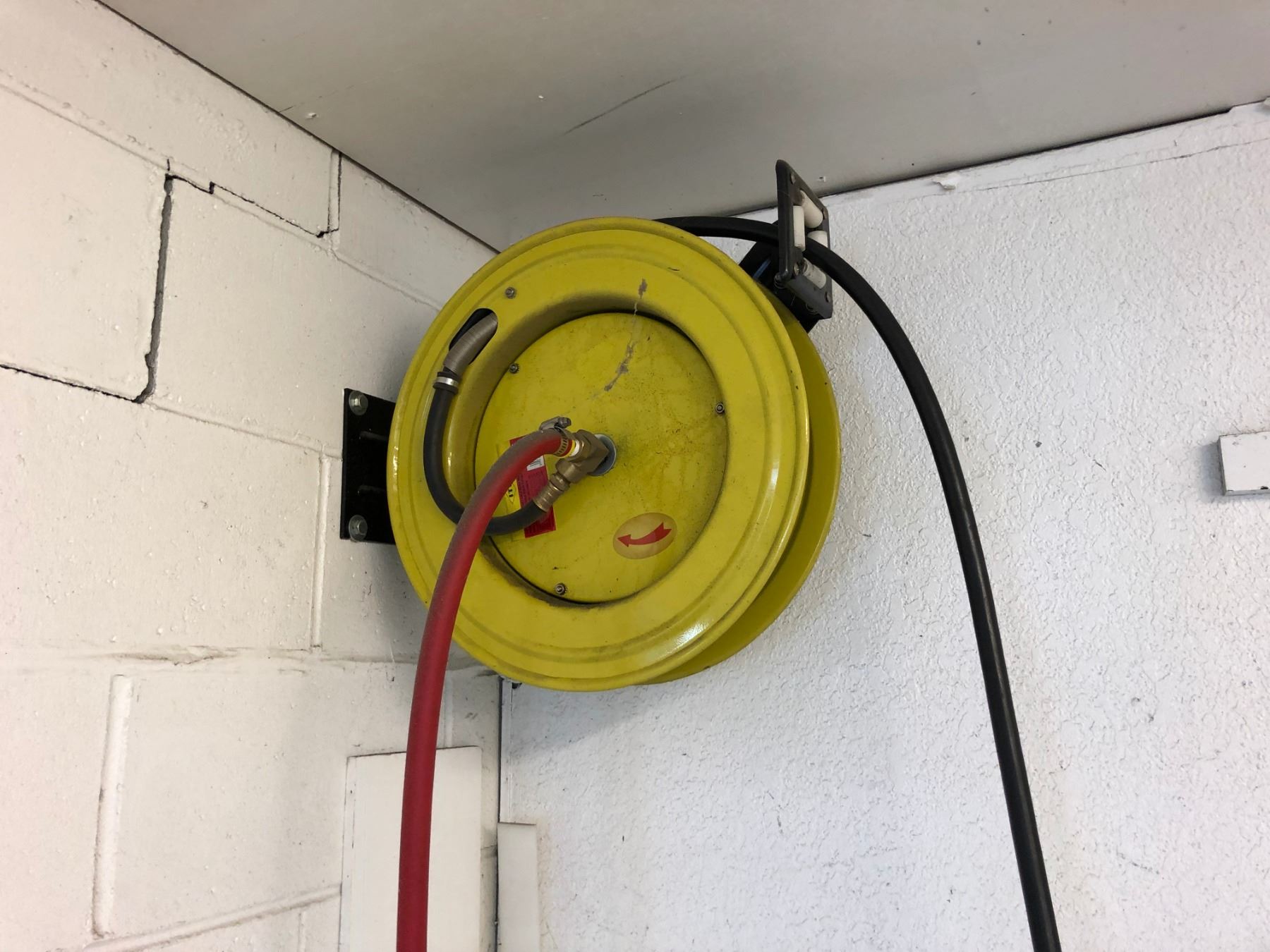 CONTENTS OF ROOM INCLUDES 2 BENCHES, RETRACTABLE AIR HOSE, BAR CLAMPS, OVEN & MORE
