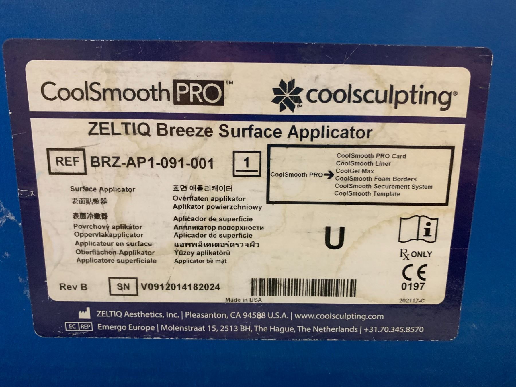 COOLSCULPTING COOLSMOOTH PRO BREEZE SURFACE APPLICATOR MOD. BRZ-AP1-091-001
