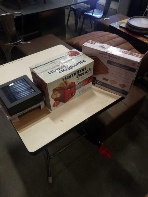COPPER CRISPER BASKET, HAMILTON BEACH TOASTER AND STAINLESS FLASK SET