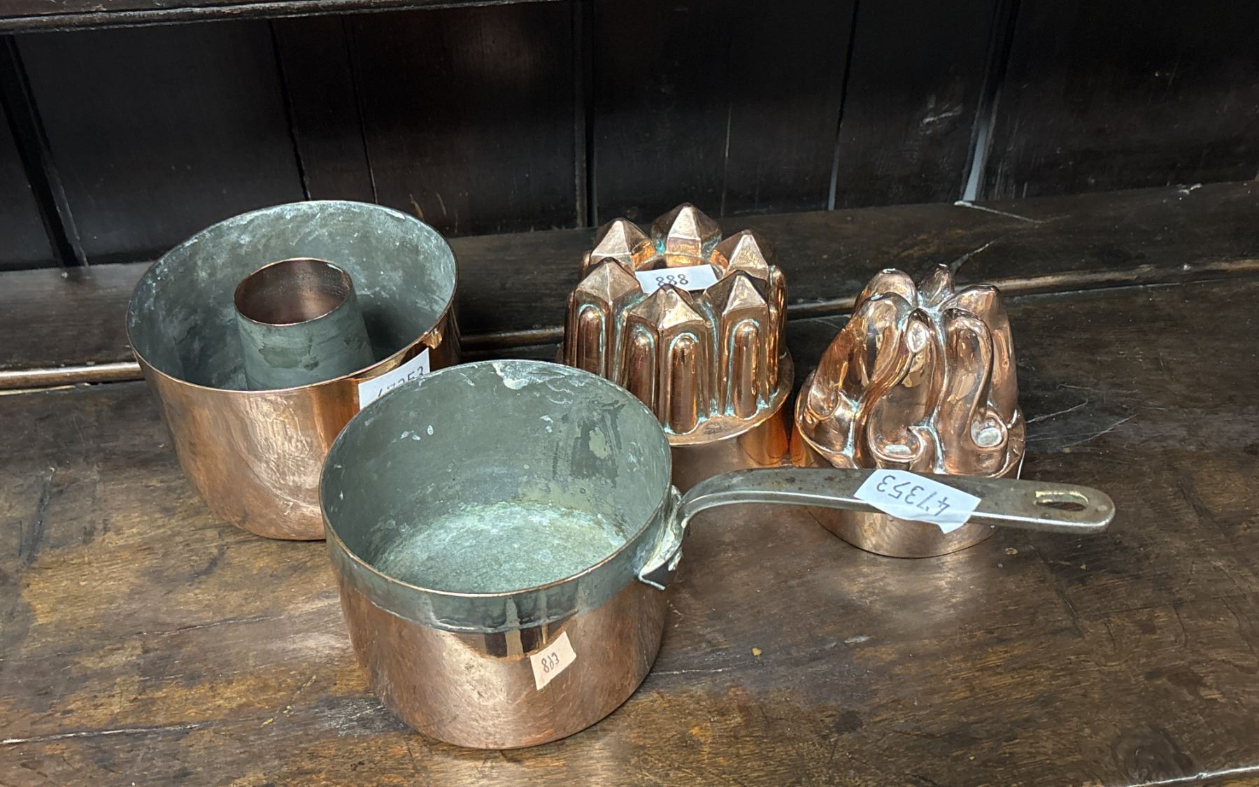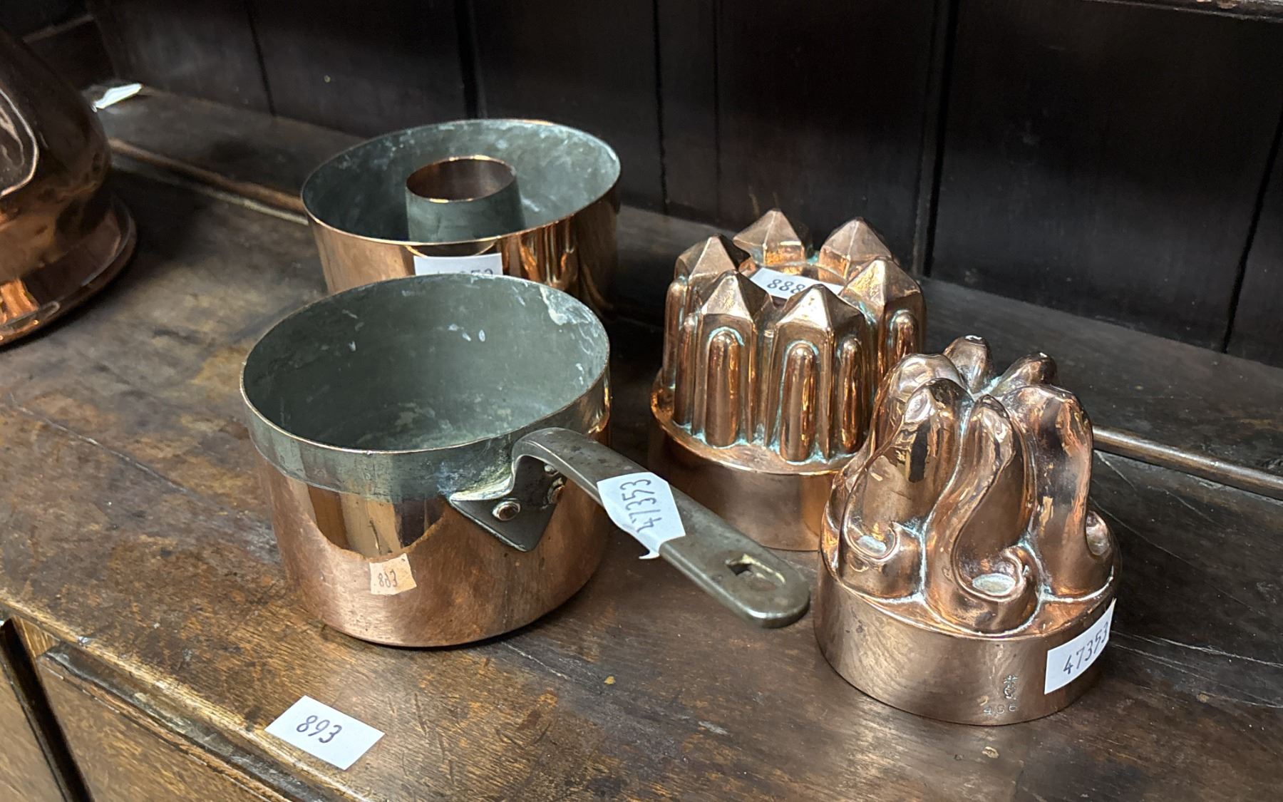 COPPER POT & 3 ASSORTED COPPER MOLDS
