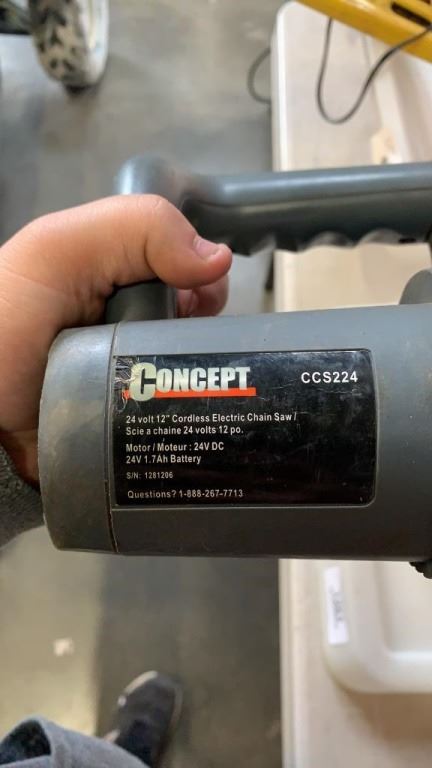 CORDLESS 24 VOLT CHAINSAW WITH 2 BATTERIES, CHARGER AND ELECTRIC HEDGER BOTH WORKING