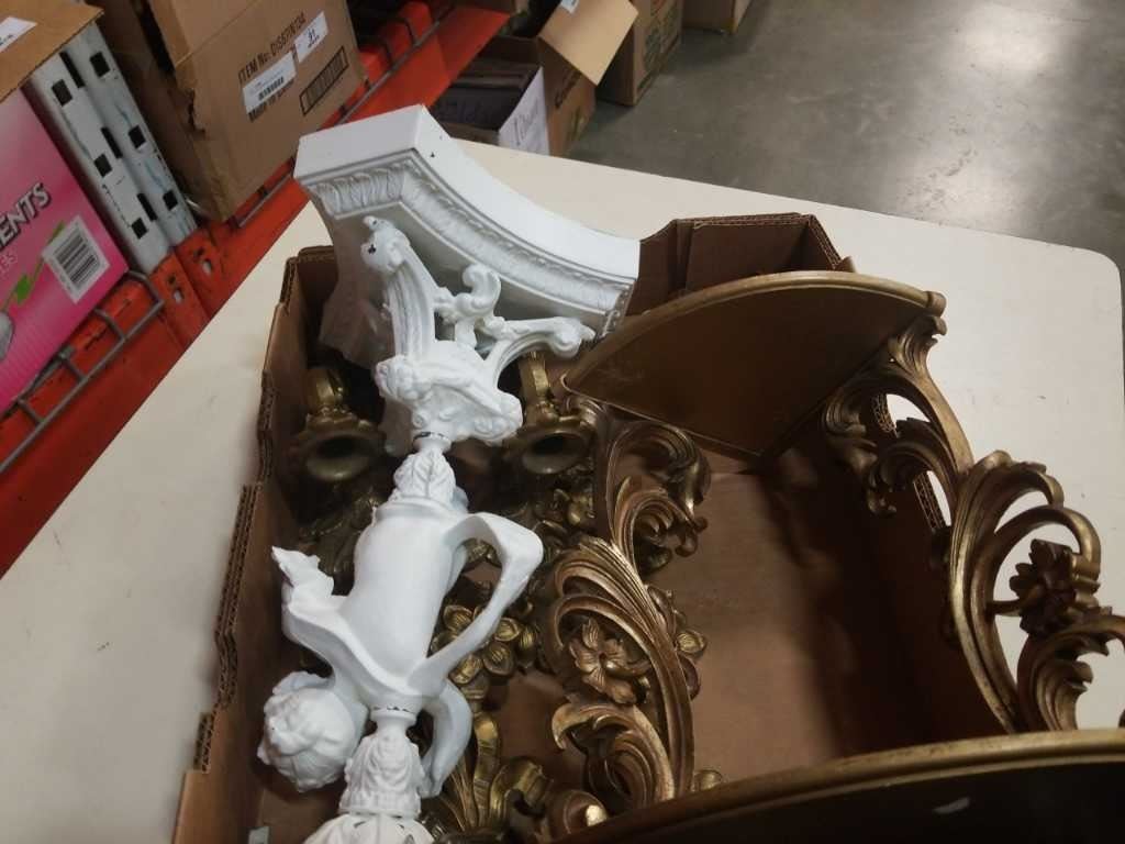 CORNER SHELF AND 2 SYROCO WALL SCONCE CANDLE HOLDERS
