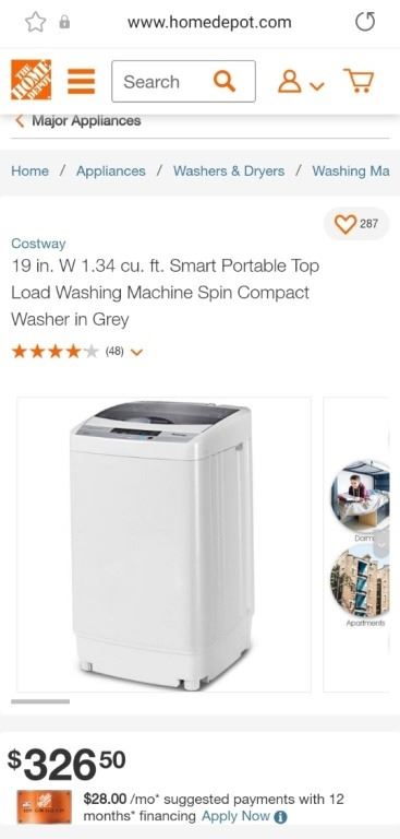 COSTWAY 1.3 CU. FT PORTABLE TOP LOAD WASHING MACHINE 19 INCH WIDE