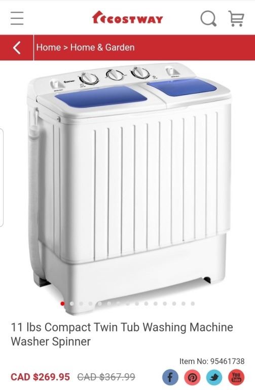 COSTWAY 11LB COMPACT TWIN TUB WASHER SPINNER - RETAIL $269.95