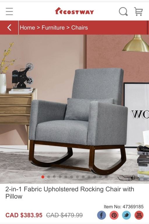 COSTWAY 2 IN 1 FABRIC UPHOLSTERED ROCKING CHAIR RETAIL $383.95