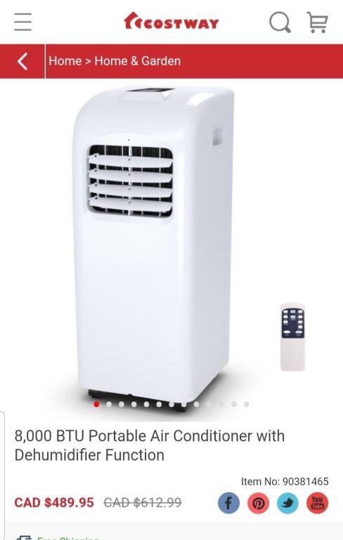 COSTWAY 8000 BTU PORTABLE AIR CONDITIONER WITH DEHUMIDIFIER FUNCTION