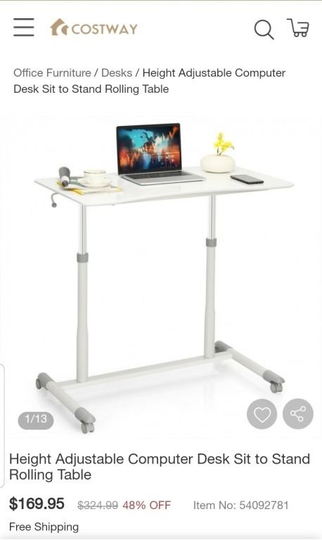 COSTWAY ADJUSTABLE HEIGHT COMPUTER DESK RETAIL $169.95
