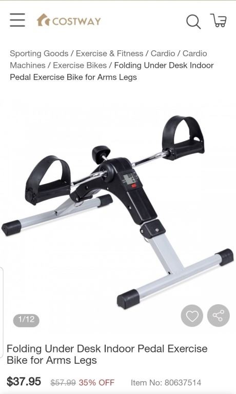 COSTWAY UNDER DESK PEDAL EXERCISER RETAIL $37.95