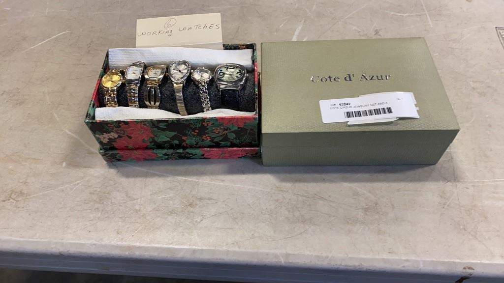 COTE D'AZUR JEWELRY SET AND 6 WORKING WATCHES