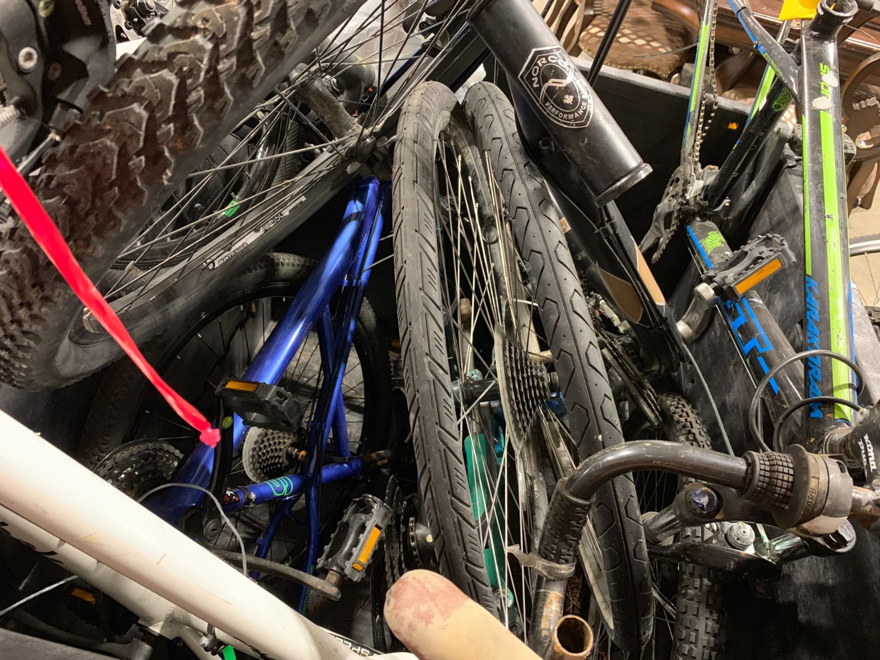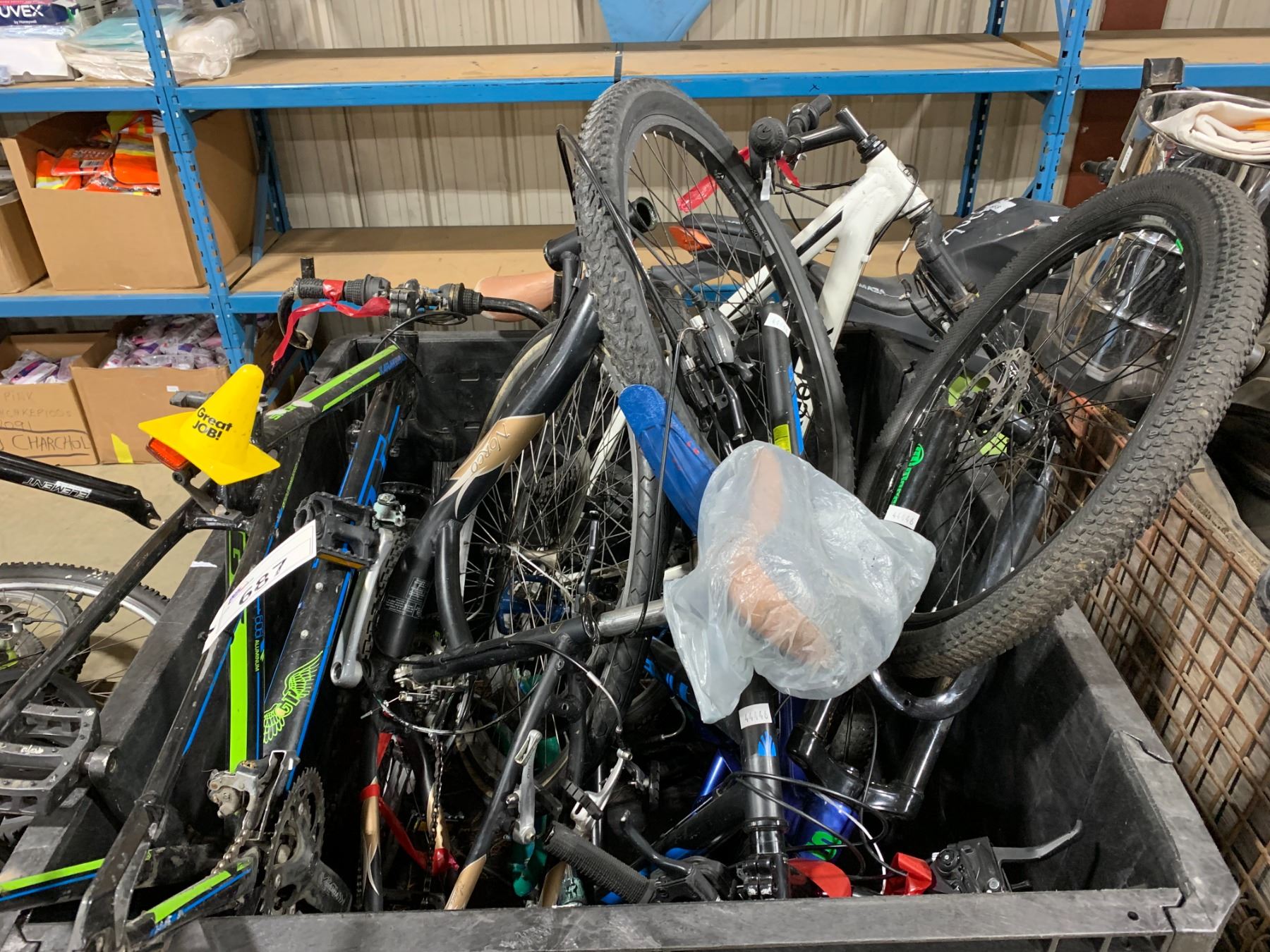 CRATE OF ASSORTED BIKE PARTS *CRATE NOT INCLUDED*