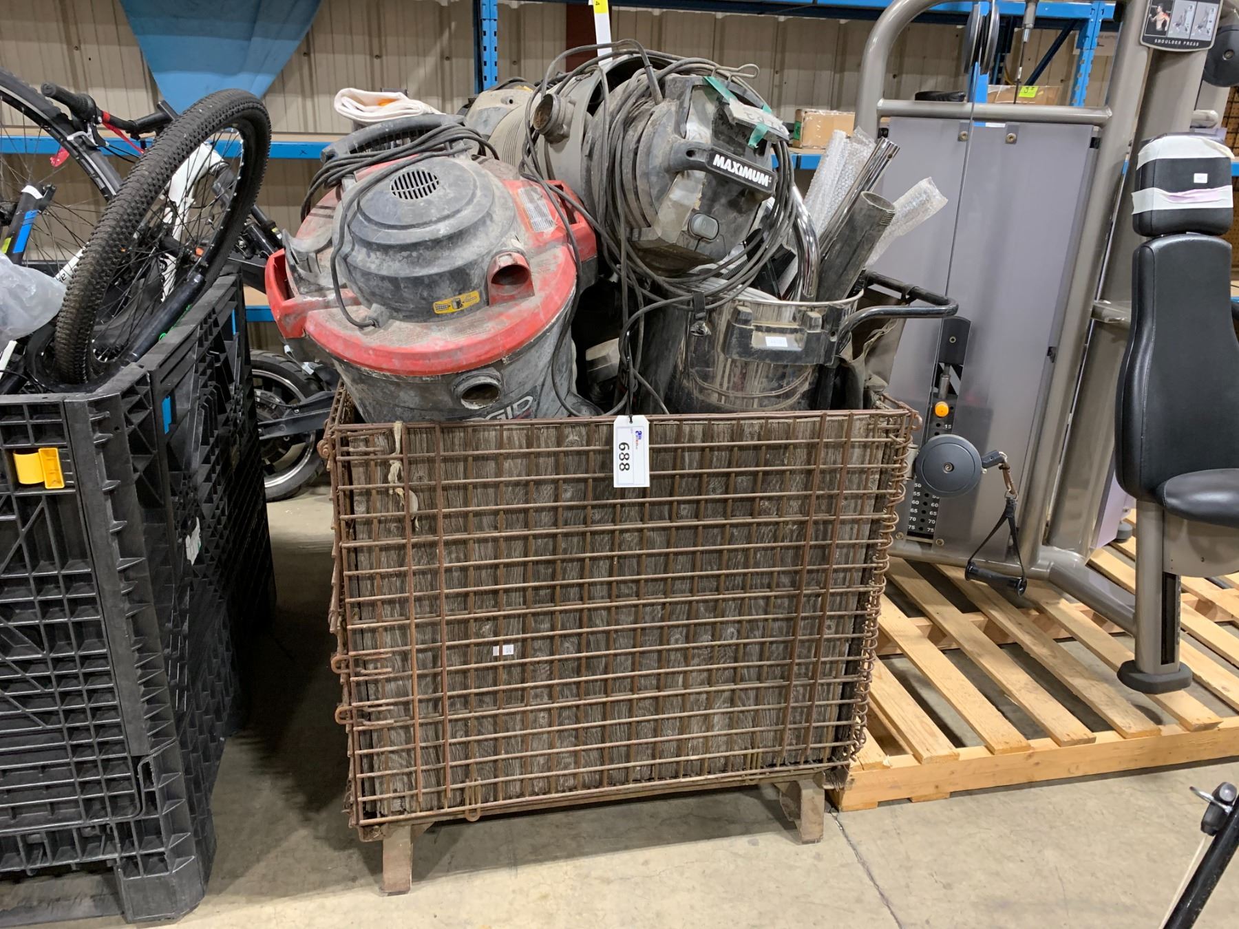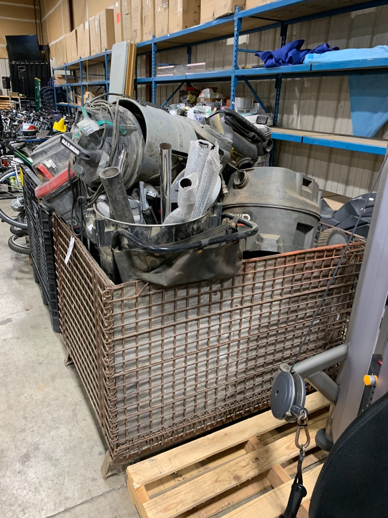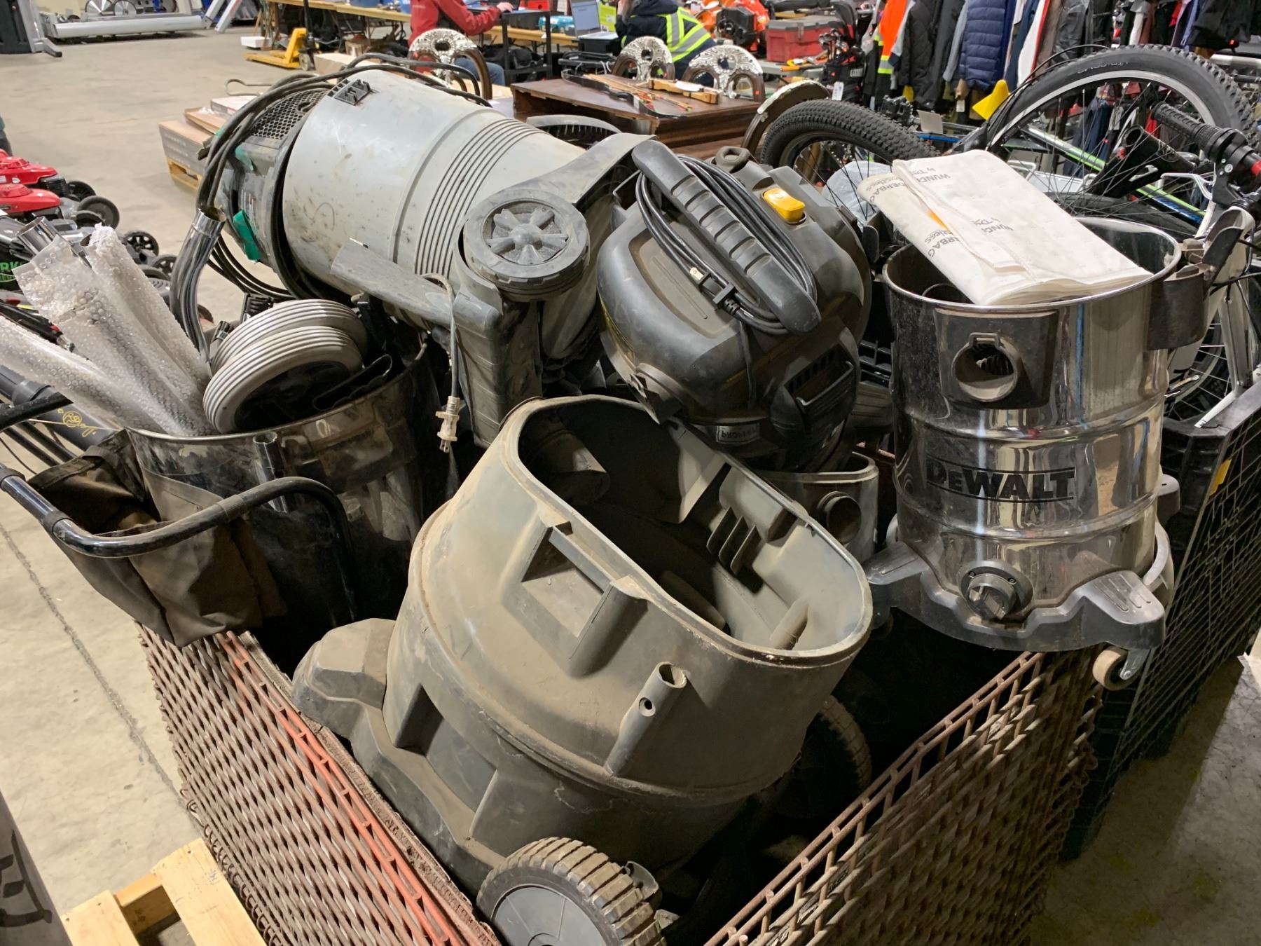CRATE OF ASSORTED SHOP VACUUMS/PARTS