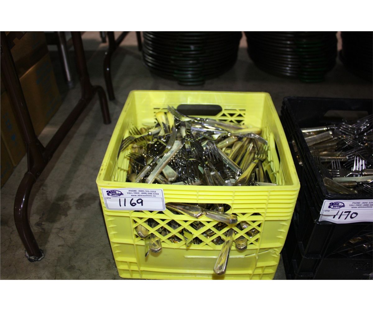 CRATE OF MIXED STAINLESS FLATWARE