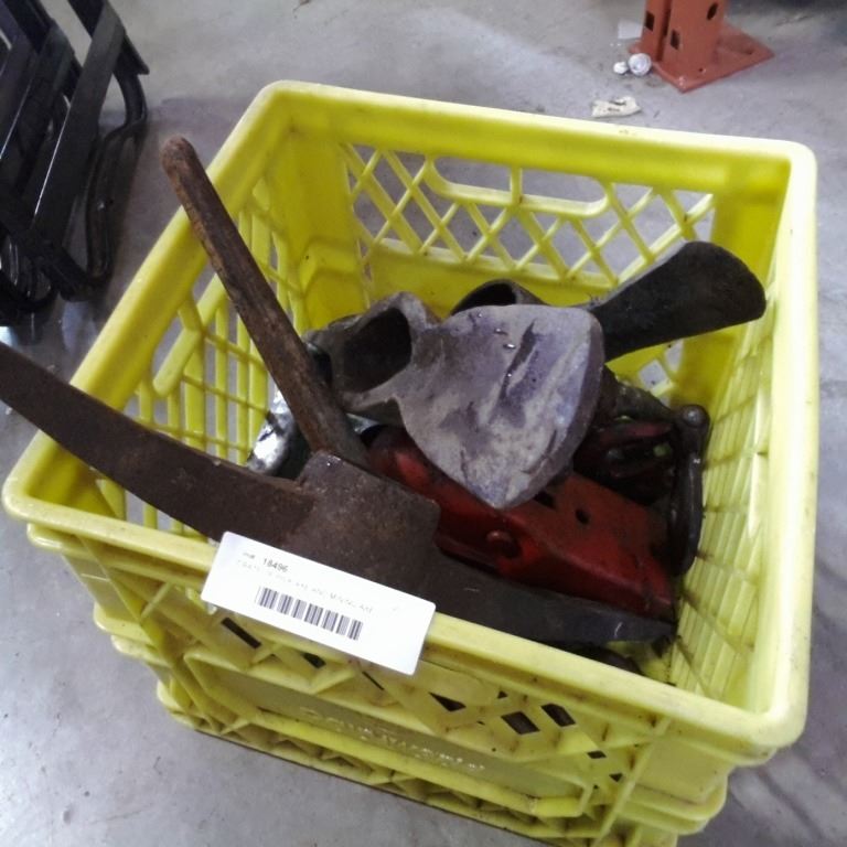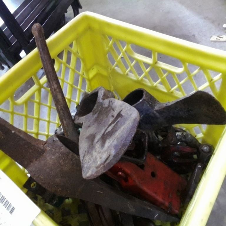 CRATE OF PICK AXE AND MINING AXE HEADS