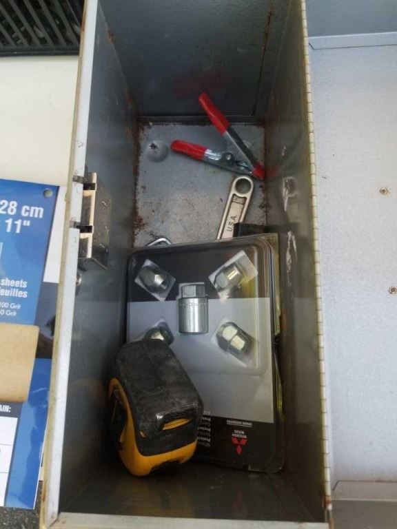 CRATE OF TOOLS, WOOD PLANE, AXE, SAW, SHOP SUPPLIES