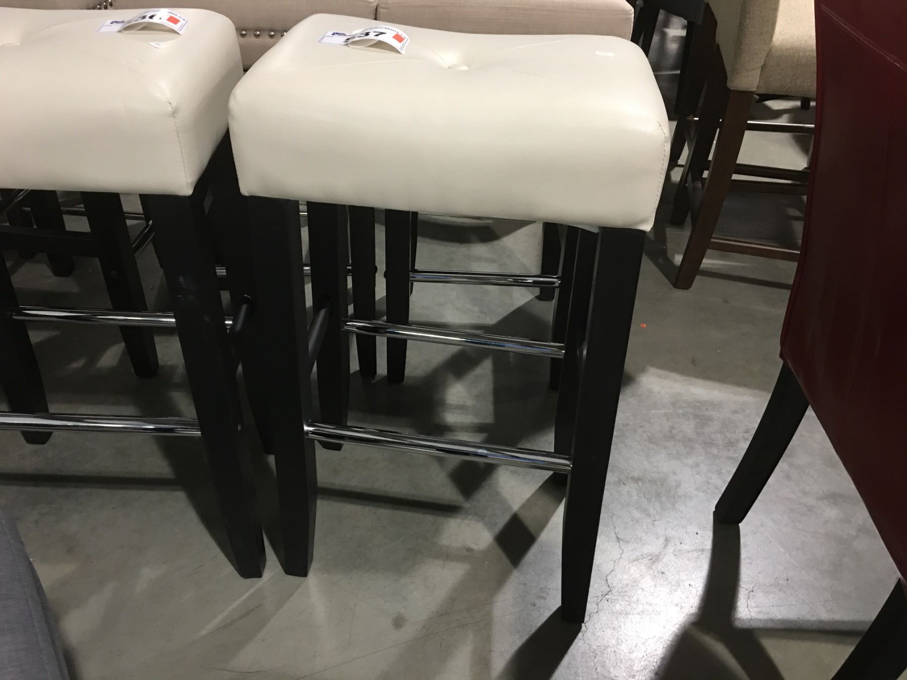 CREAM LEATHER UPHOLSTERED BAR STOOL (RECTANGLE) SEAT HEIGHT 30"