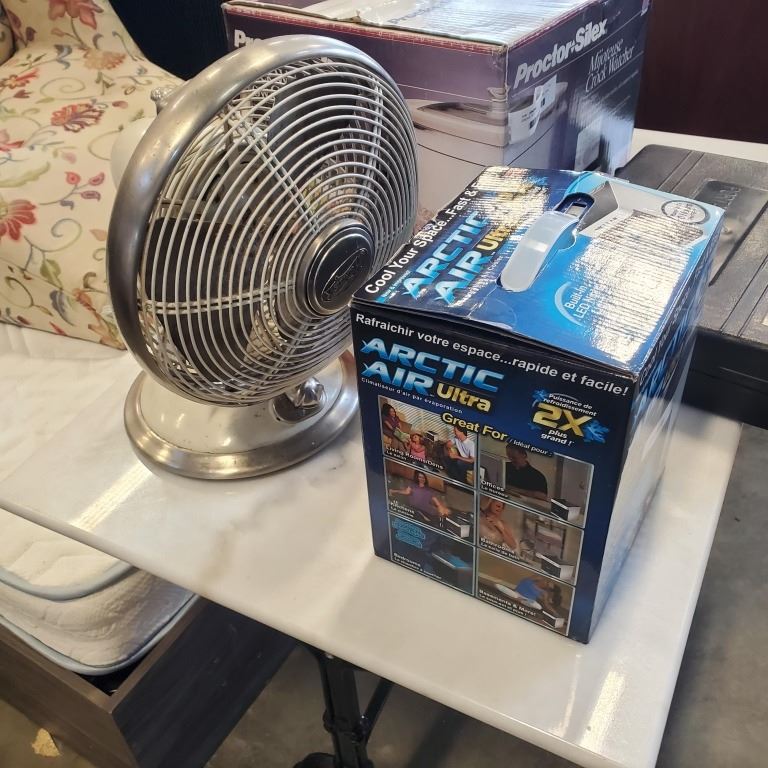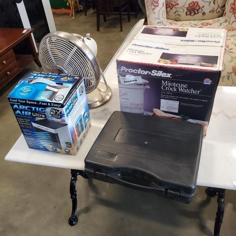 CROCK POT, PORTABLE GAS STOVE, FAN, AND ARTIC AIR FAN