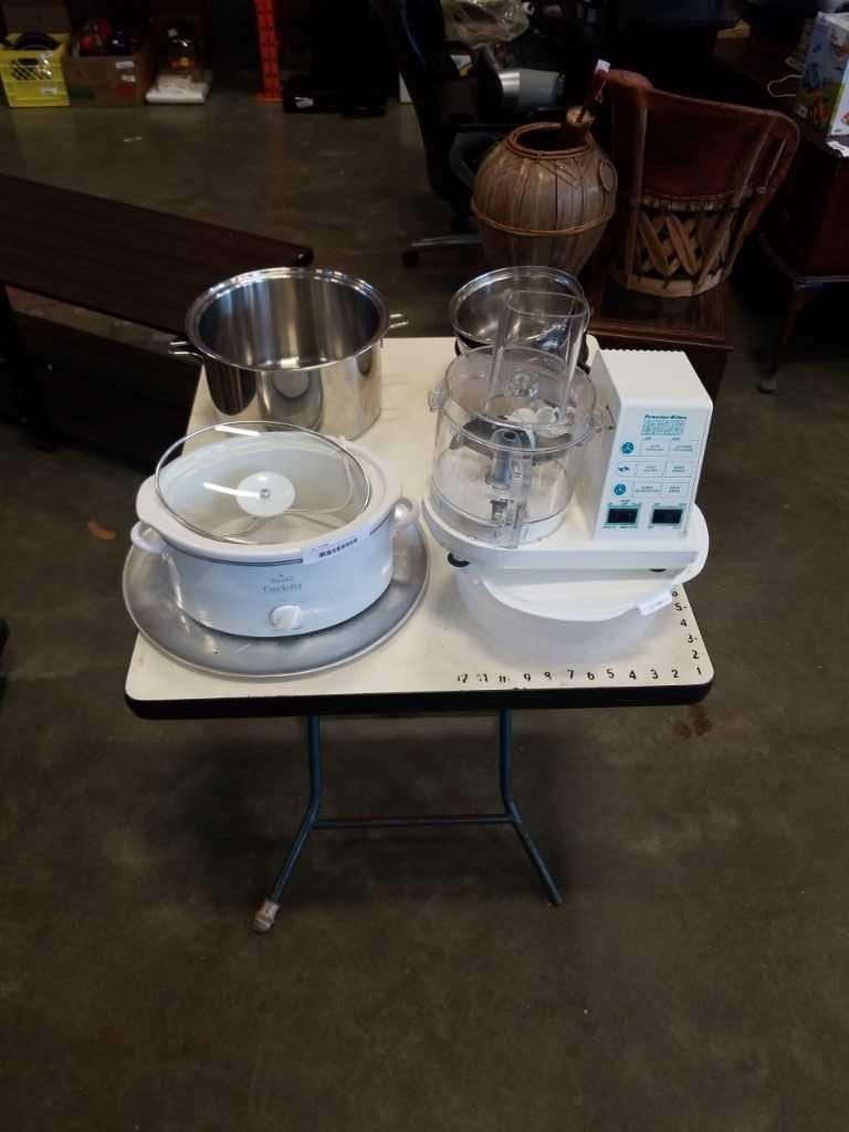 CROCK POT SLOW COOKER, FOOD PROCESSOR WITH POTS AND PANS