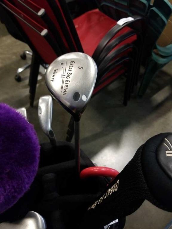 CROSPELE GOLF BAG WITH CALLAWAY BIG BERTHA DRIVERS AND IRONS INCLUDING PING PUTTER RIGHT HANDED