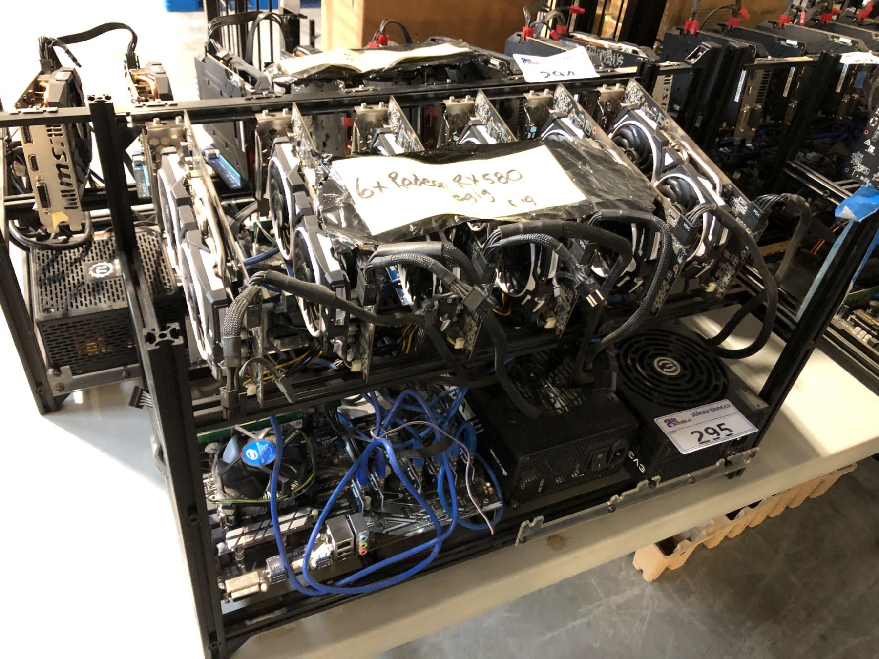 CRYPTO CURRENCY MINING RIG COMES WITH 6 RX580 8 GB GPU'S, 1 1200, AND 1 750W P.S.
