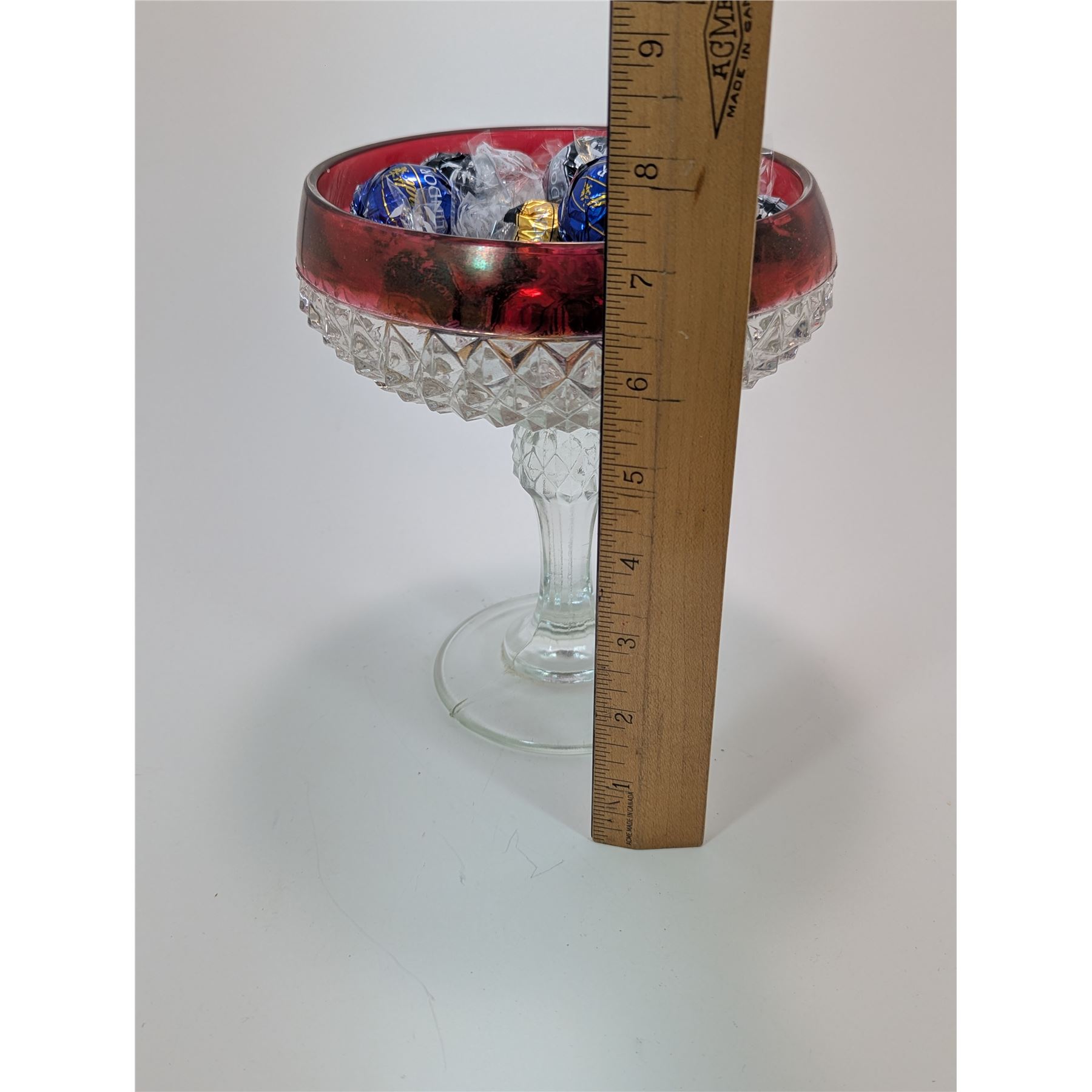 CRYSTAL CANDY DISH Red trim 7.5" (Includes Lindor chocolates)