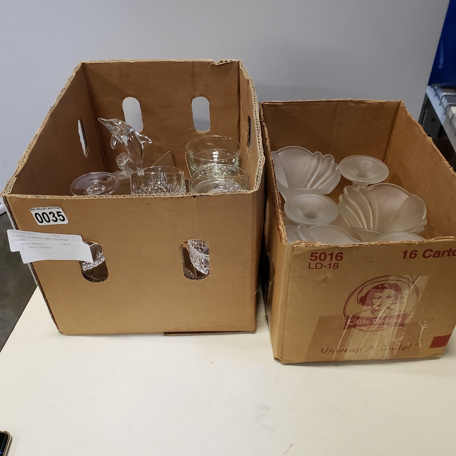 CRYSTAL GLASSES AND DOLPHIN FIGURE AND ITALY DISHES