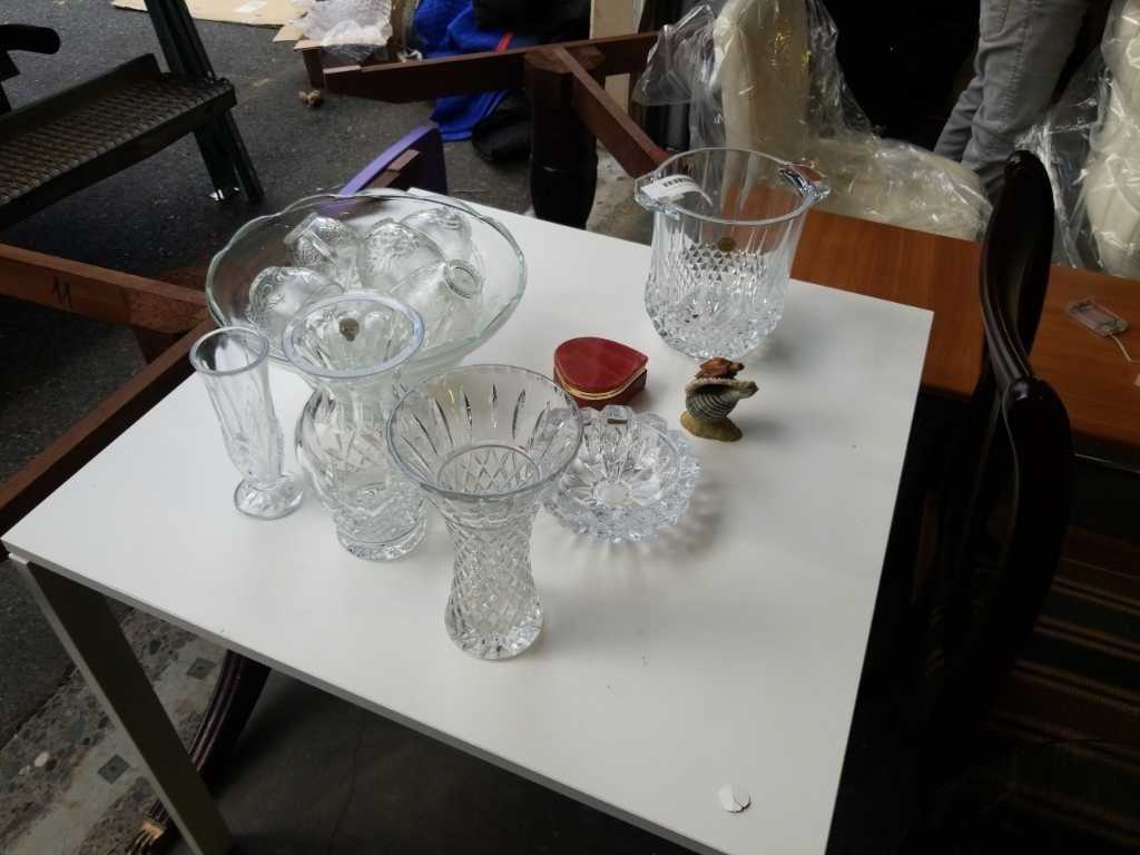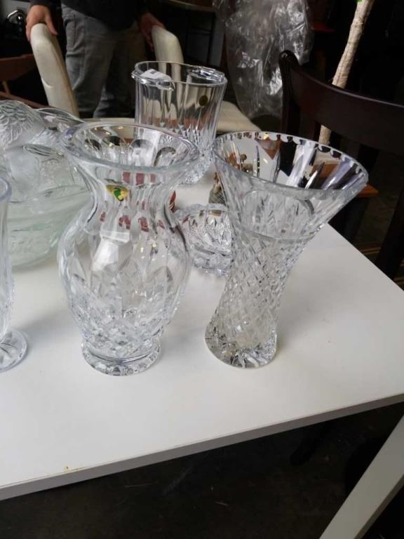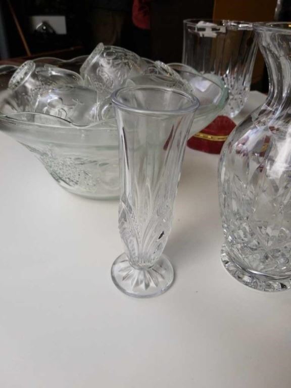 CRYSTAL PUNCH BOWL AND CRYSTAL VASES, ICE BUCKET
