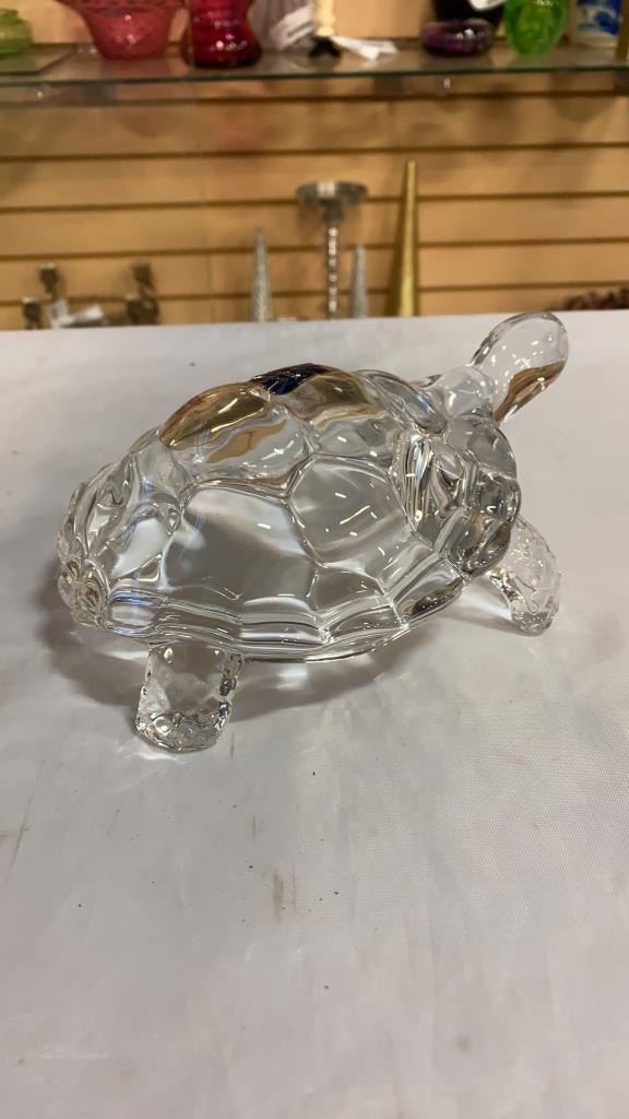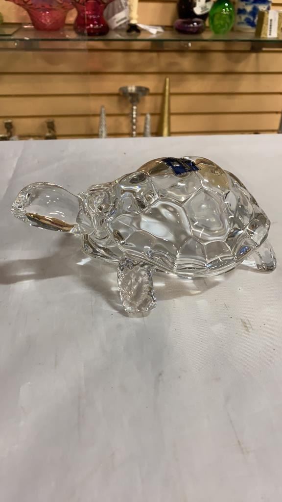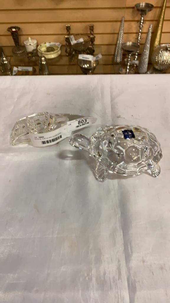 CRYSTAL TURTLE AND GLASS BOAT