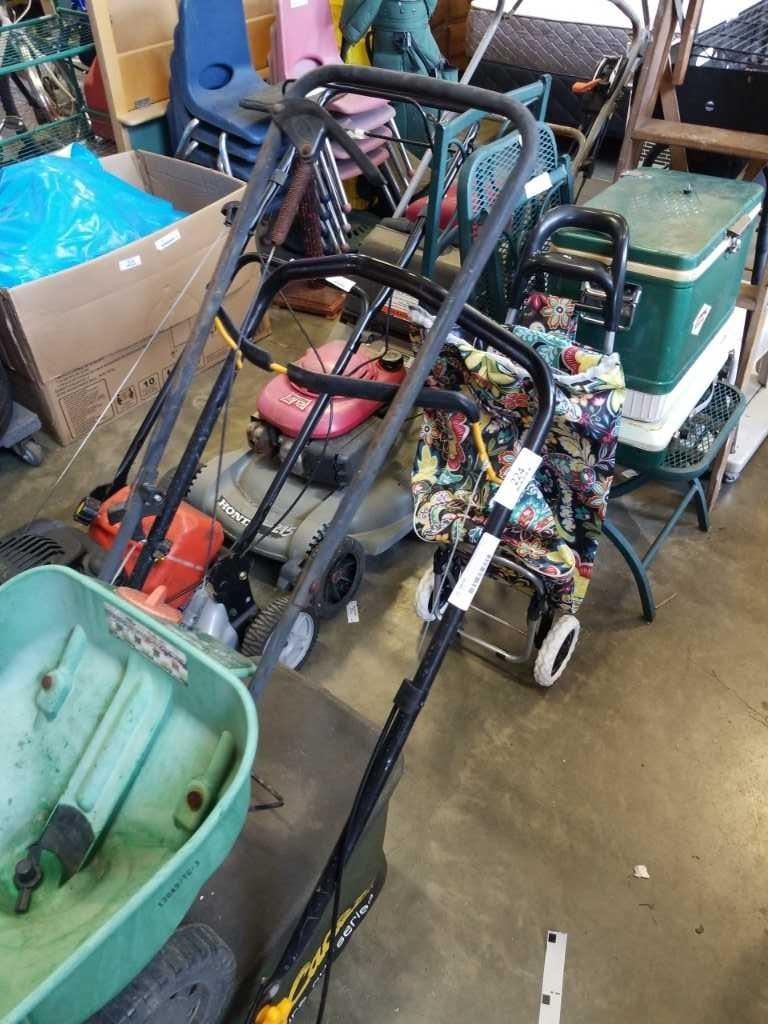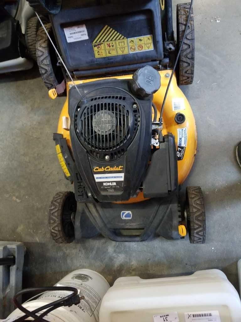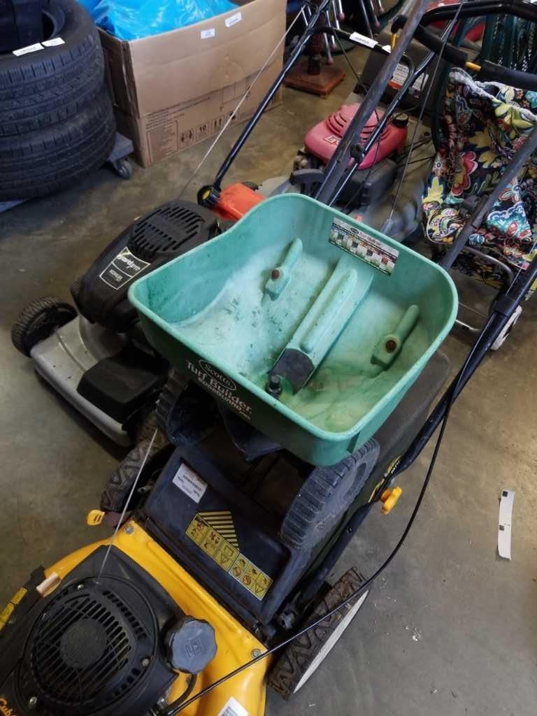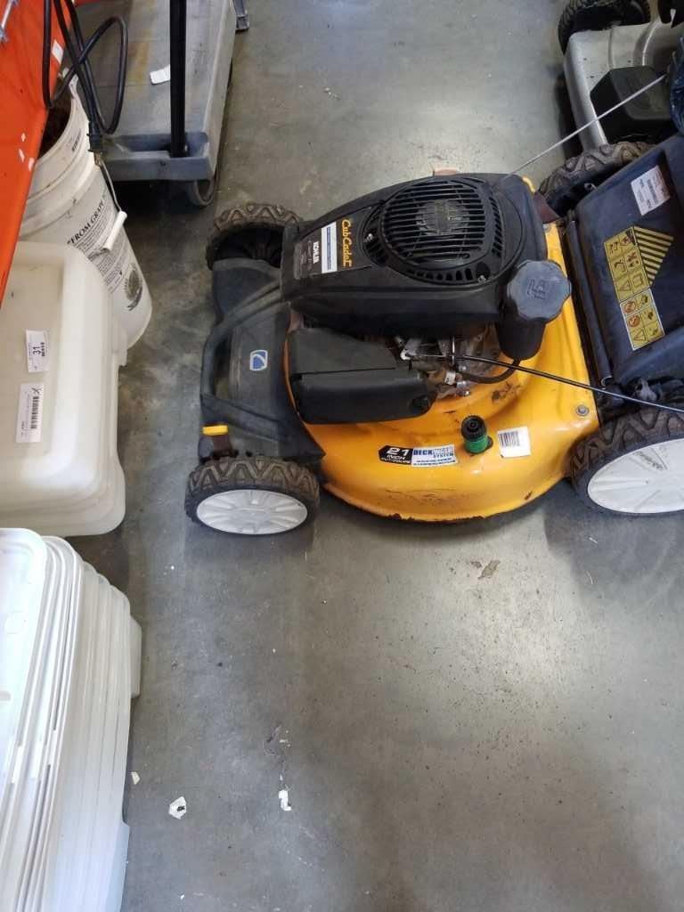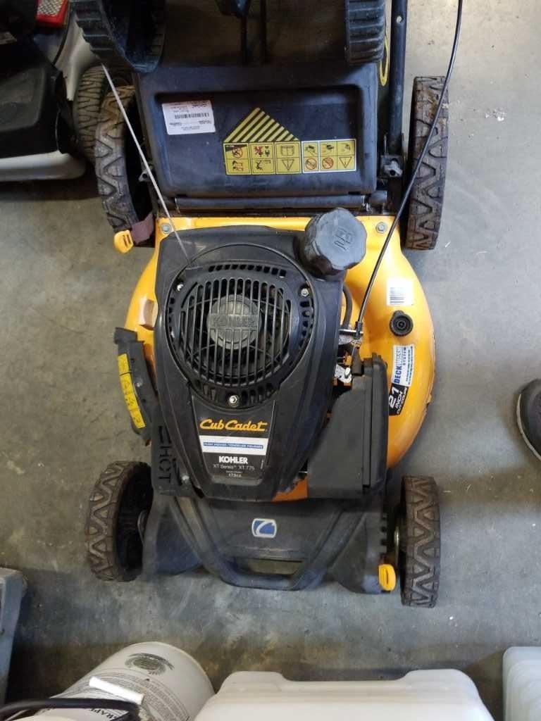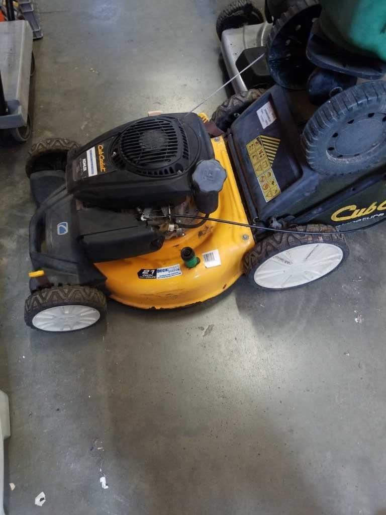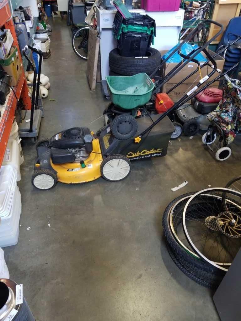 CUB CADET GAS LAWN MOWER WORKING WITH CATCHER AND SEED SPREADER