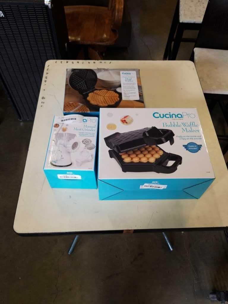 CUCINA PRO BUBBLE WAFFLE MAKER, HEART WAFFLE MAKER, AND MEAT GRINDER